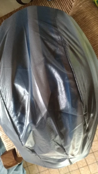 First open the helmet protection cover and fit it from top to bottom.Finally adjust the position of the rear tail so that the elastic band completely wraps the helmet.