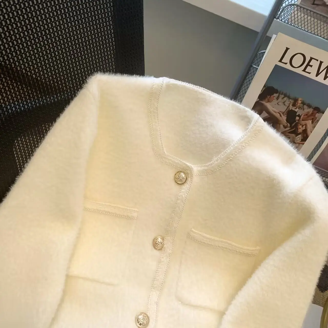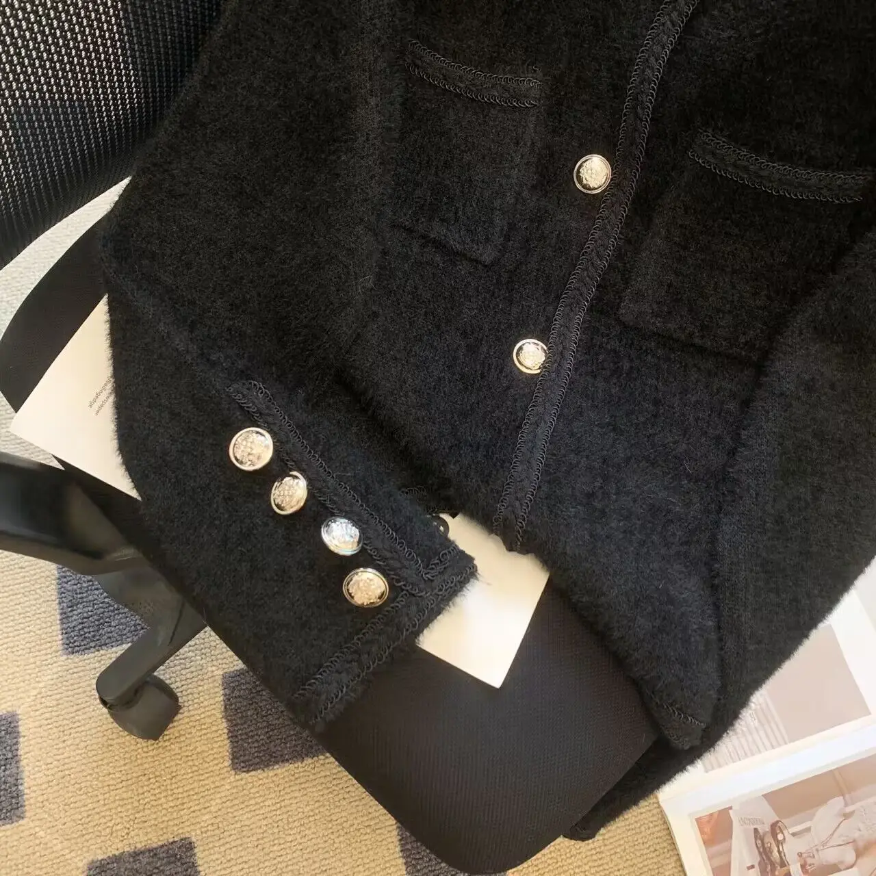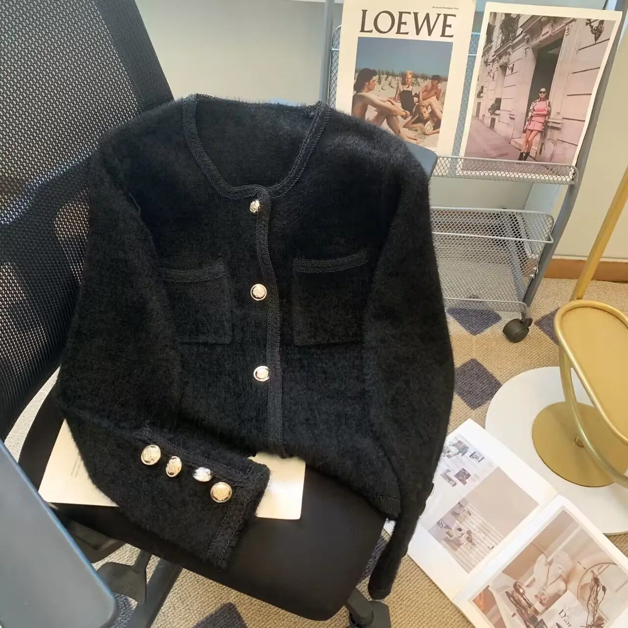 Vintage Beige Warm Women Long Sleeve Knitted Cardigan Sweater Coat Autumn Winter Korean Fashion Black Single Breasted Tops Trend