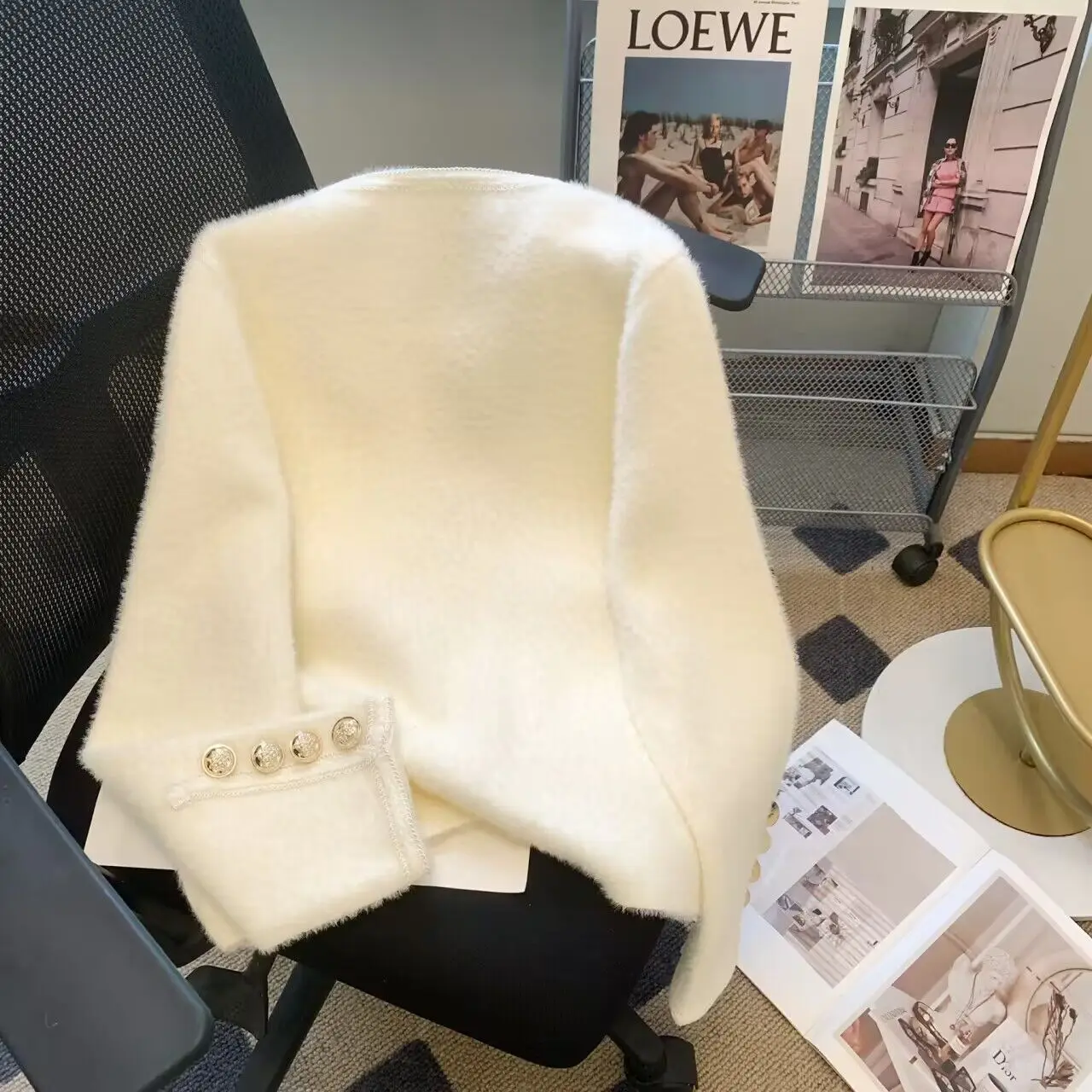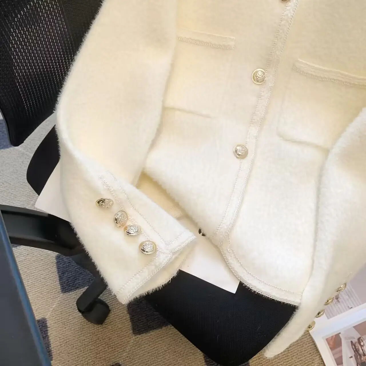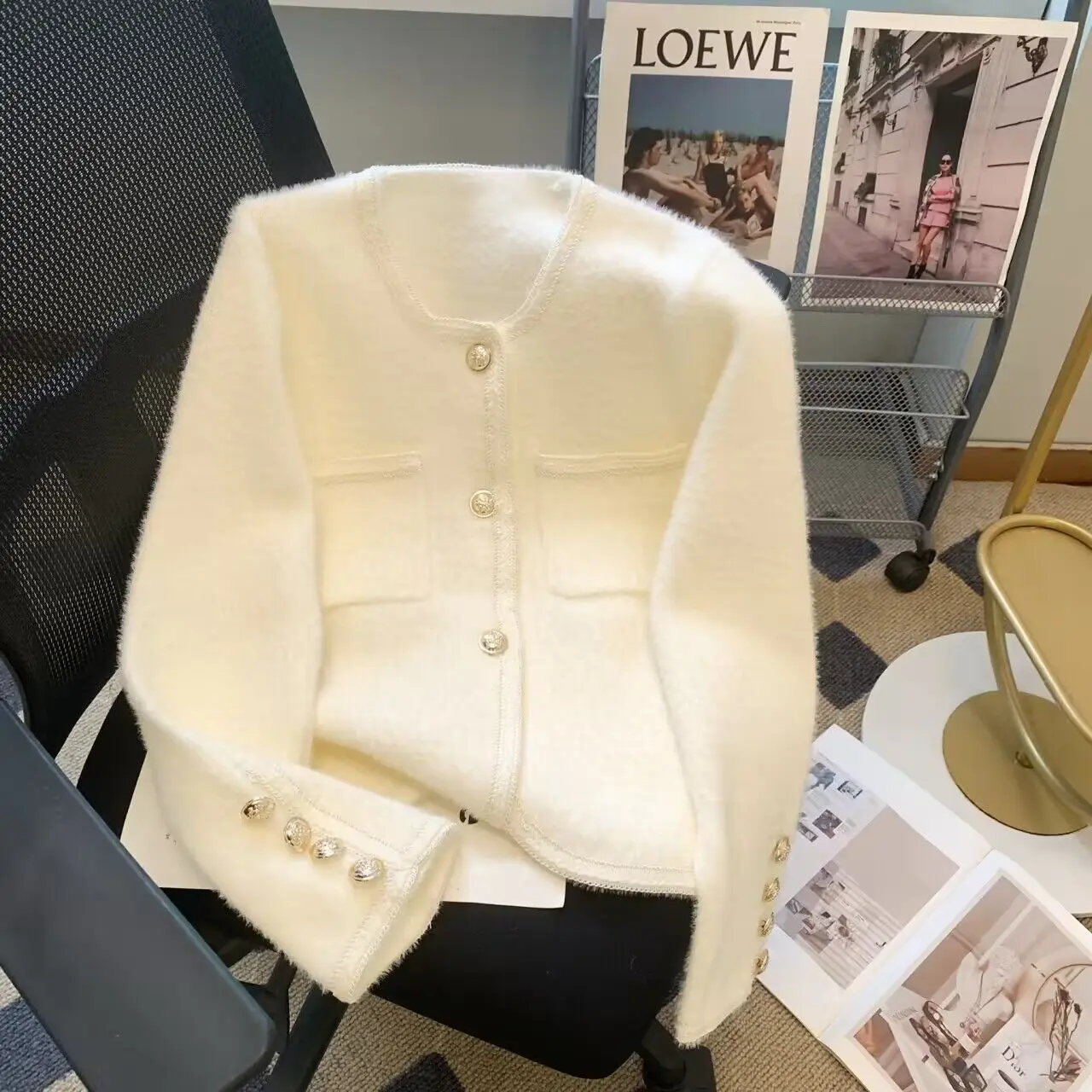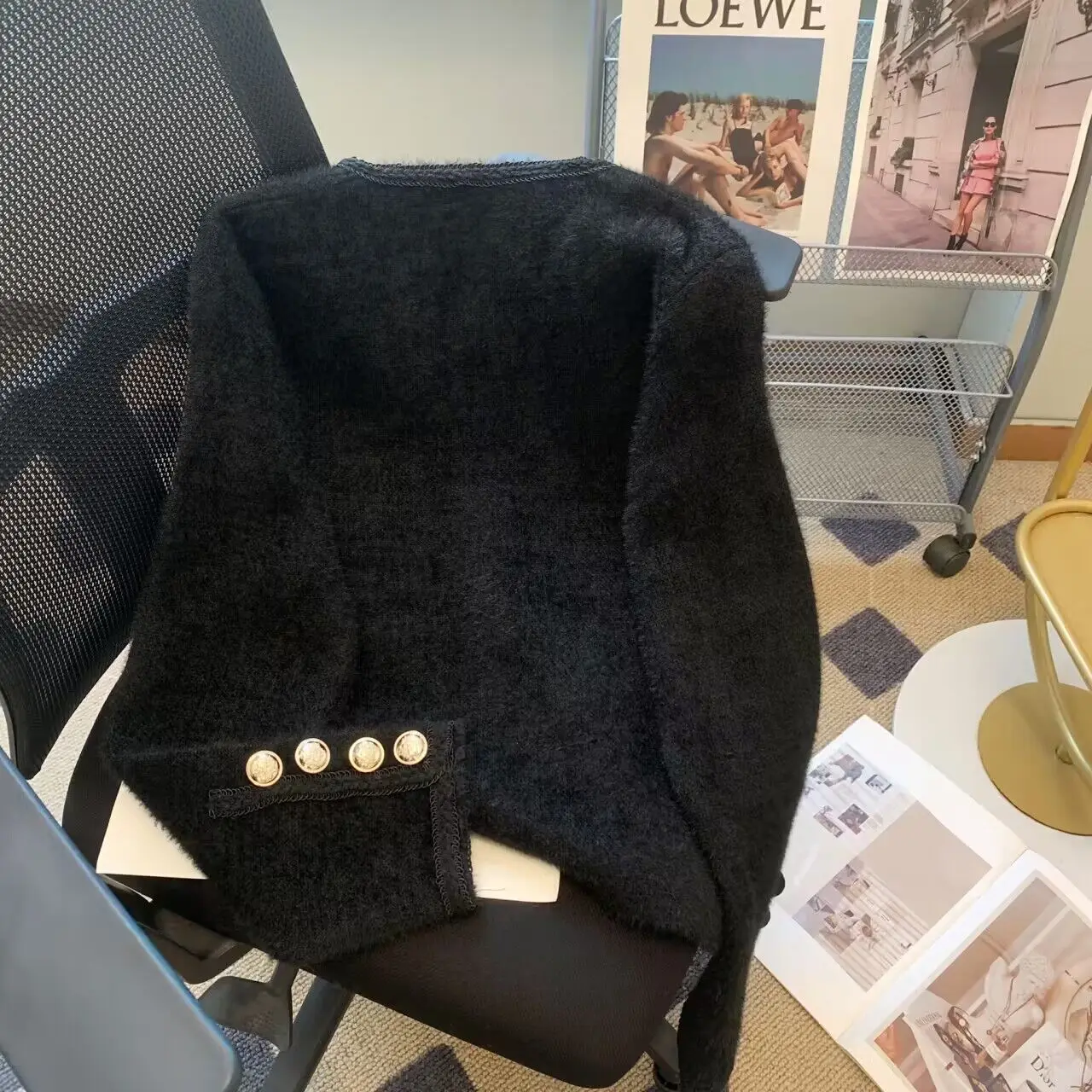 Vintage Beige Warm Women Long Sleeve Knitted Cardigan Sweater Coat Autumn Winter Korean Fashion Black Single Breasted Tops Trend