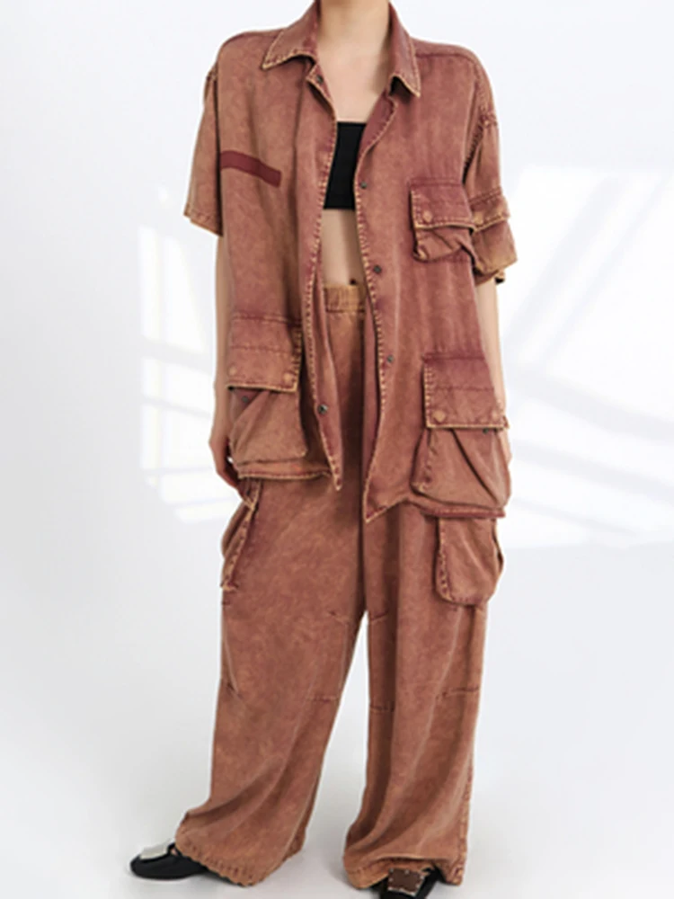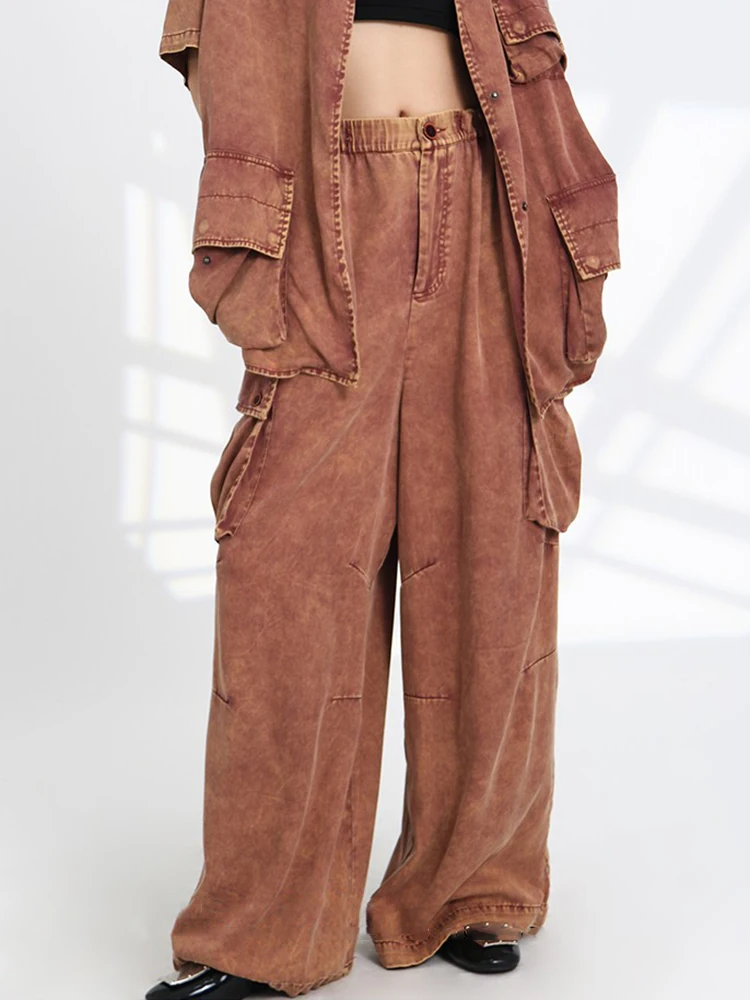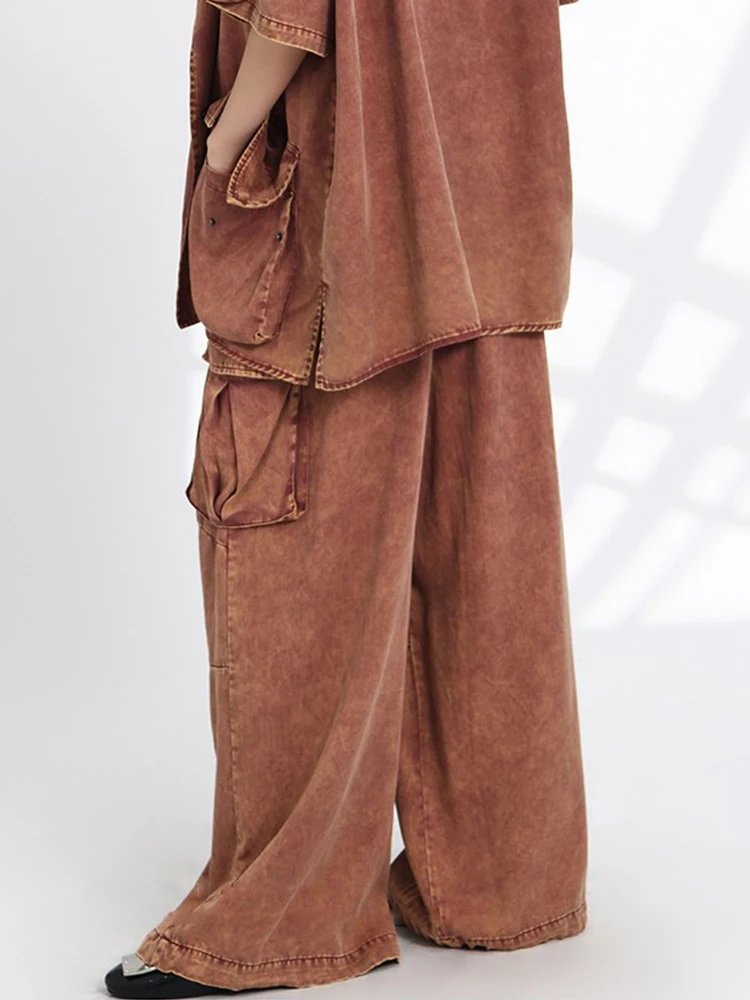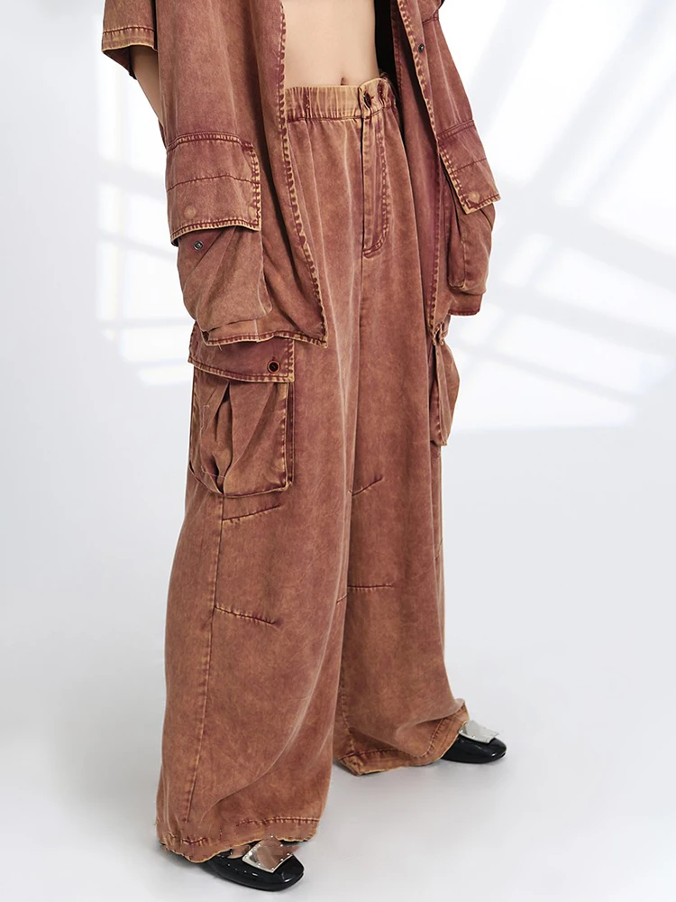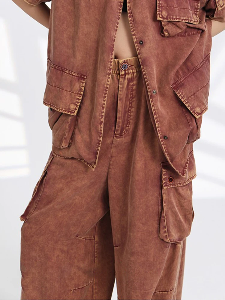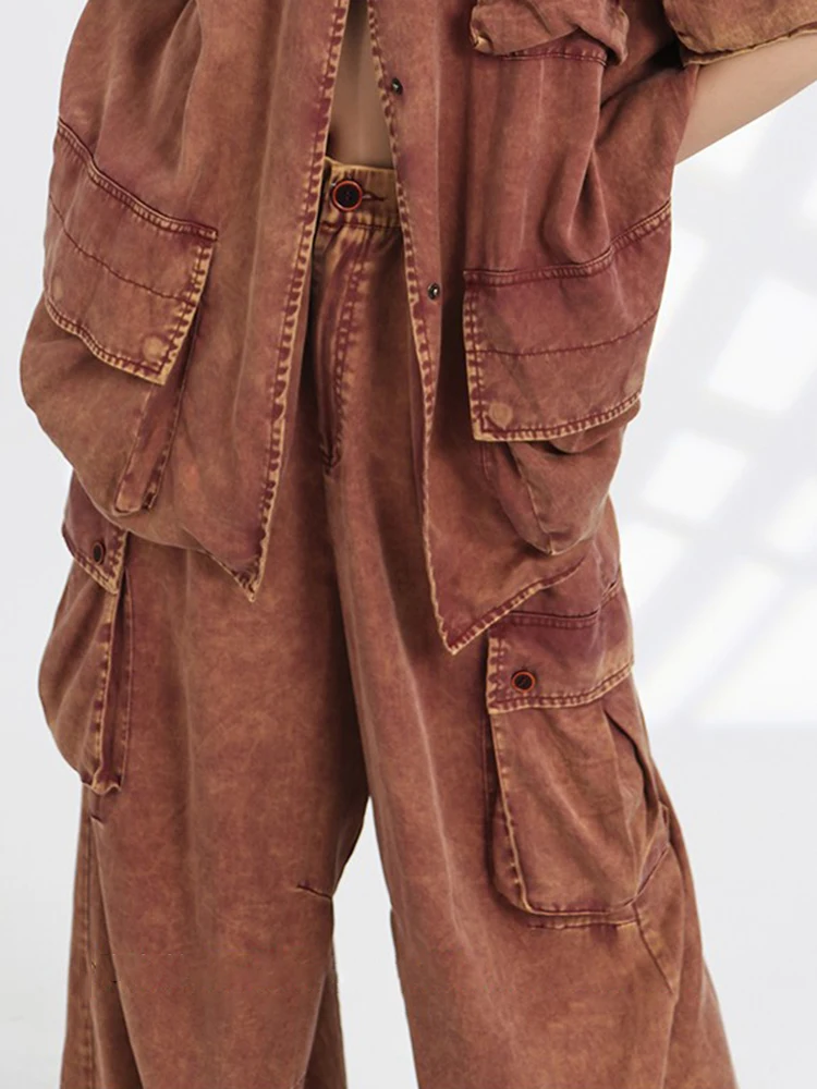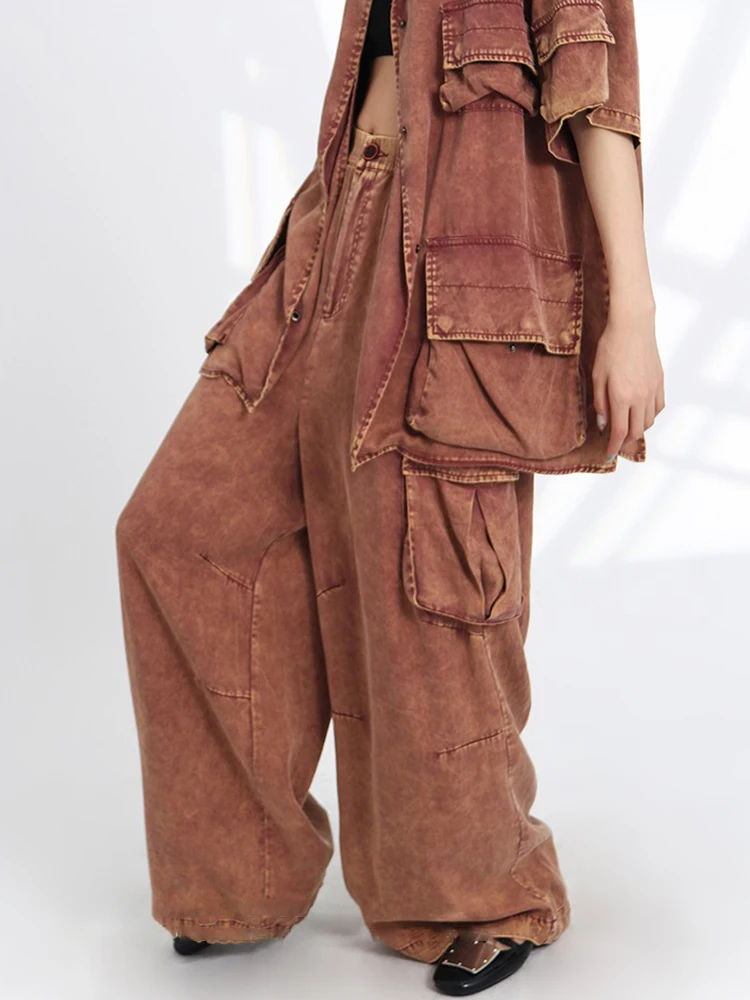 Vintage Loose Patchwork Pockets Cargo Jeans For Women High Waist Spliced Button Wide Leg Denim Pants Female