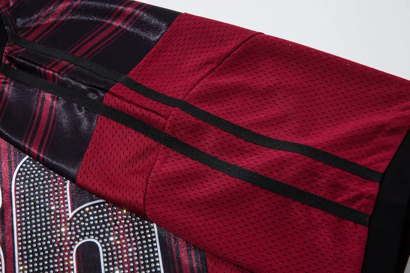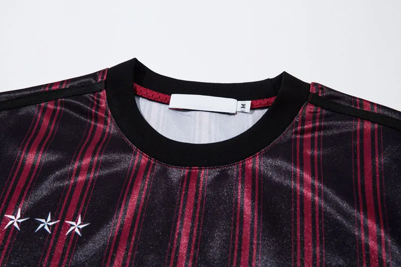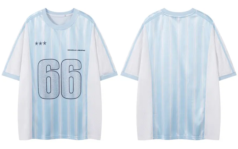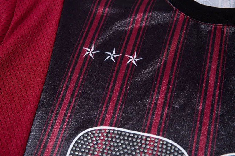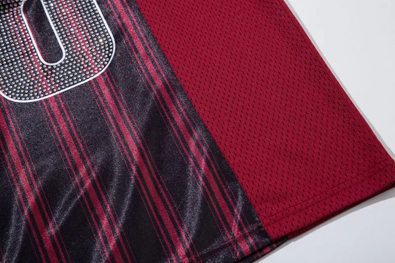 Vintage Mesh Jersey T-Shirt with Rhinestones Graphic Printed Stripe Patchwork Sport Tshirt Streetwear Hip Hop Quick Drying Top