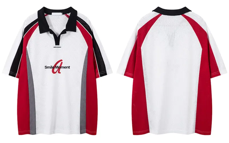 Vintage Mesh Jersey T-Shirt Y2K Graphic Printed Patchwork Sport Tshirt Streetwear Hip Hop Baggy Breathable Quick Drying Top Tee