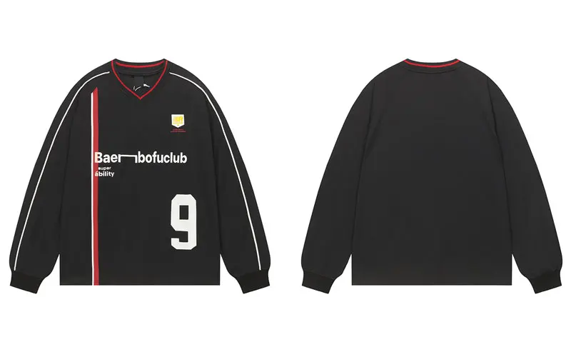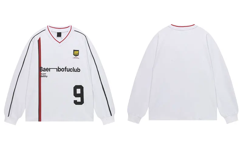 Vintage T-Shirt Y2K Graphic Printed Racing Sports Long Sleeve Tshirt Streetwear Hip Hop Harajuku Casual Baggy V-Neck Top Tee