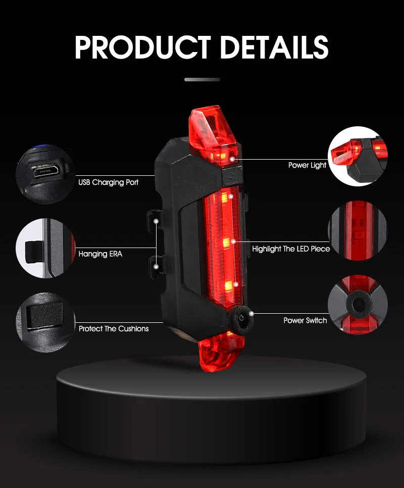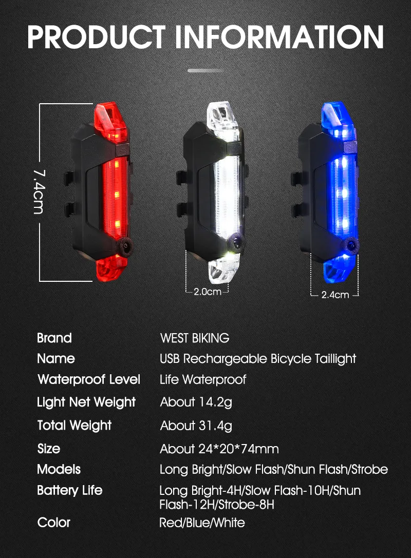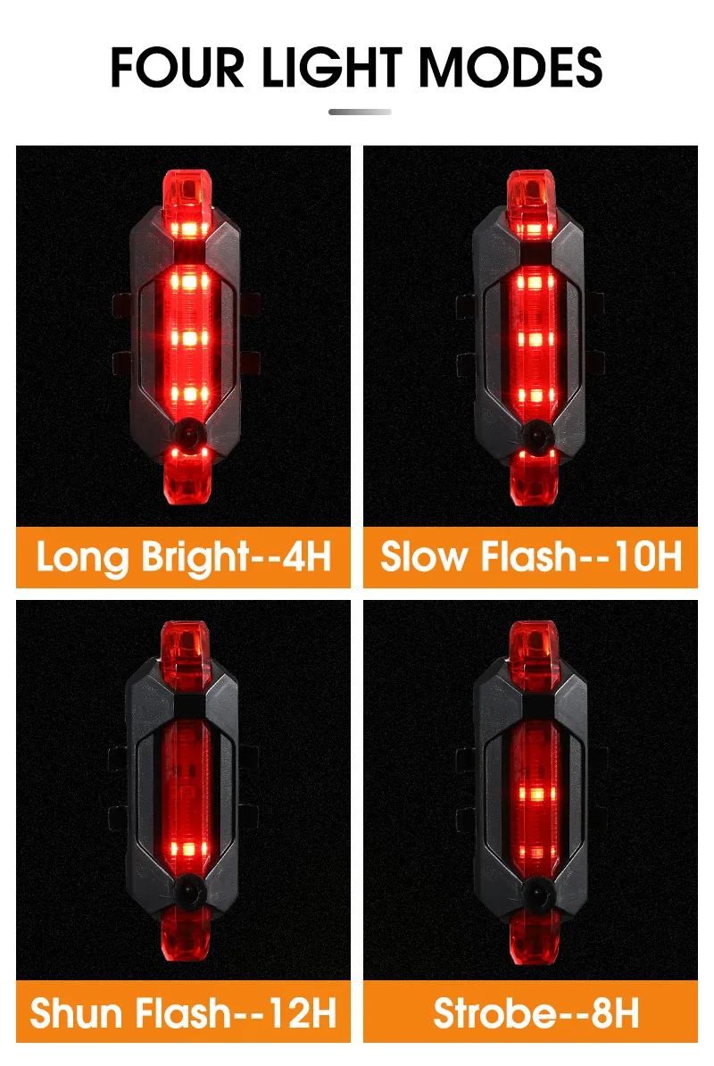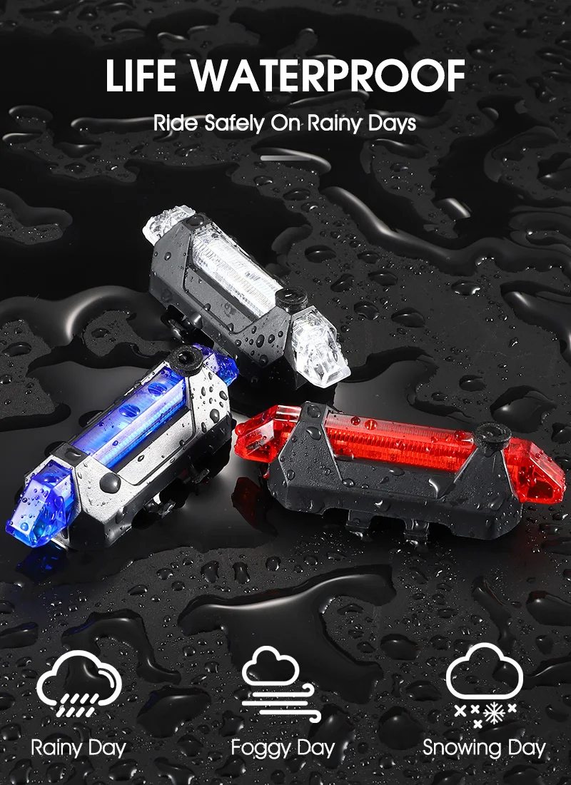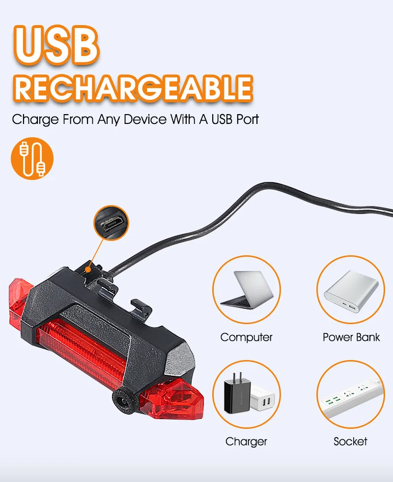 Waterproof Bicycle Rear Light USB Rechargeable LED Tail Light Bike Accessories 4 Mode Cycling Safety Warning Lamp
