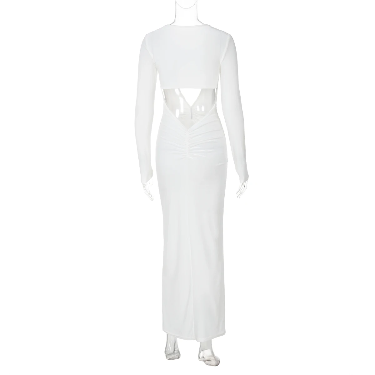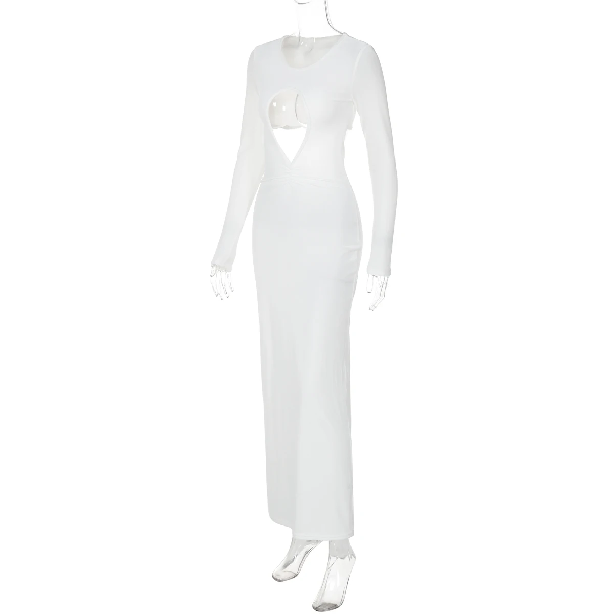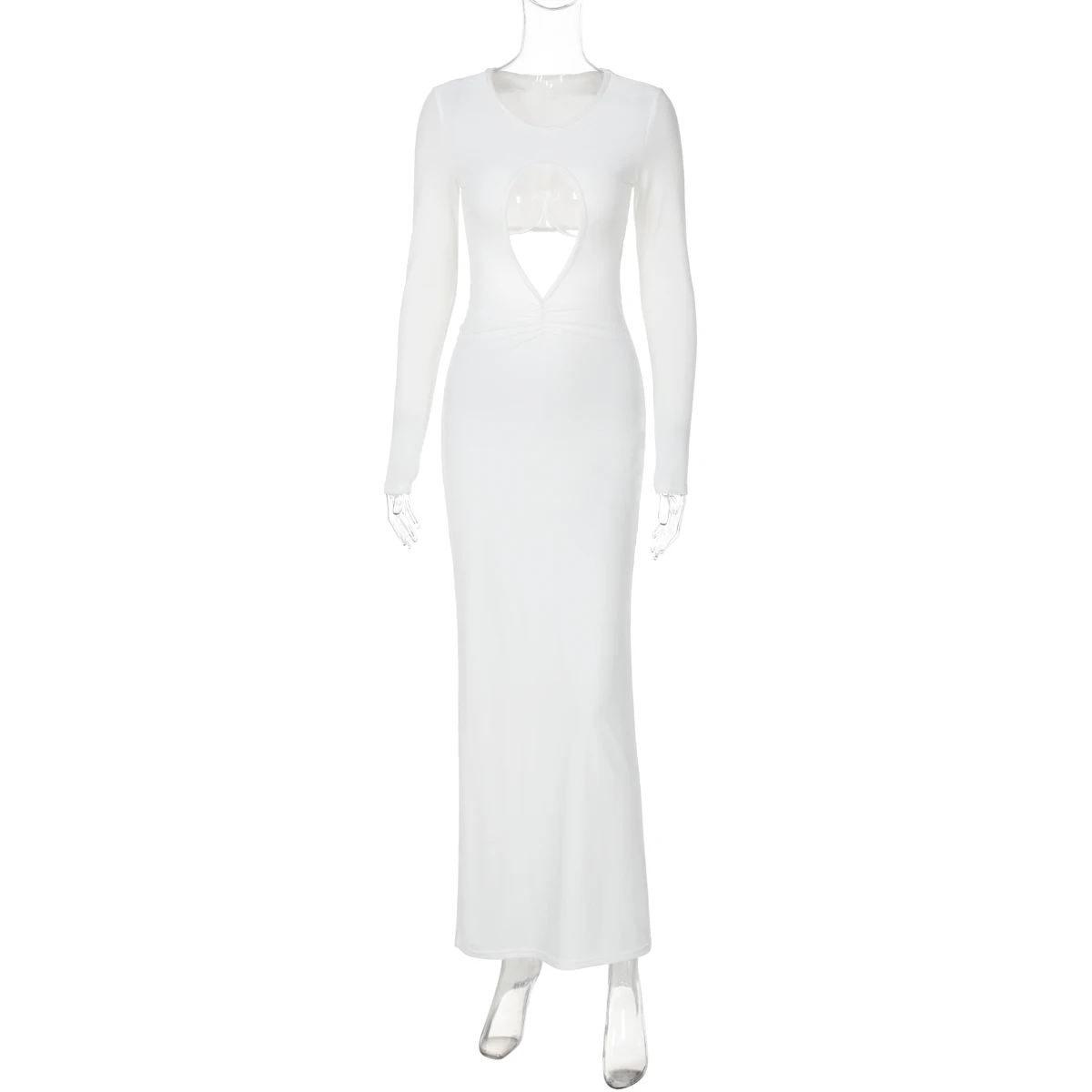 White Long Sleeve Hollow Out Sexy Slim Maxi Prom Dress Fall Winter Women Fashion Y2K Outfits Birthday Party