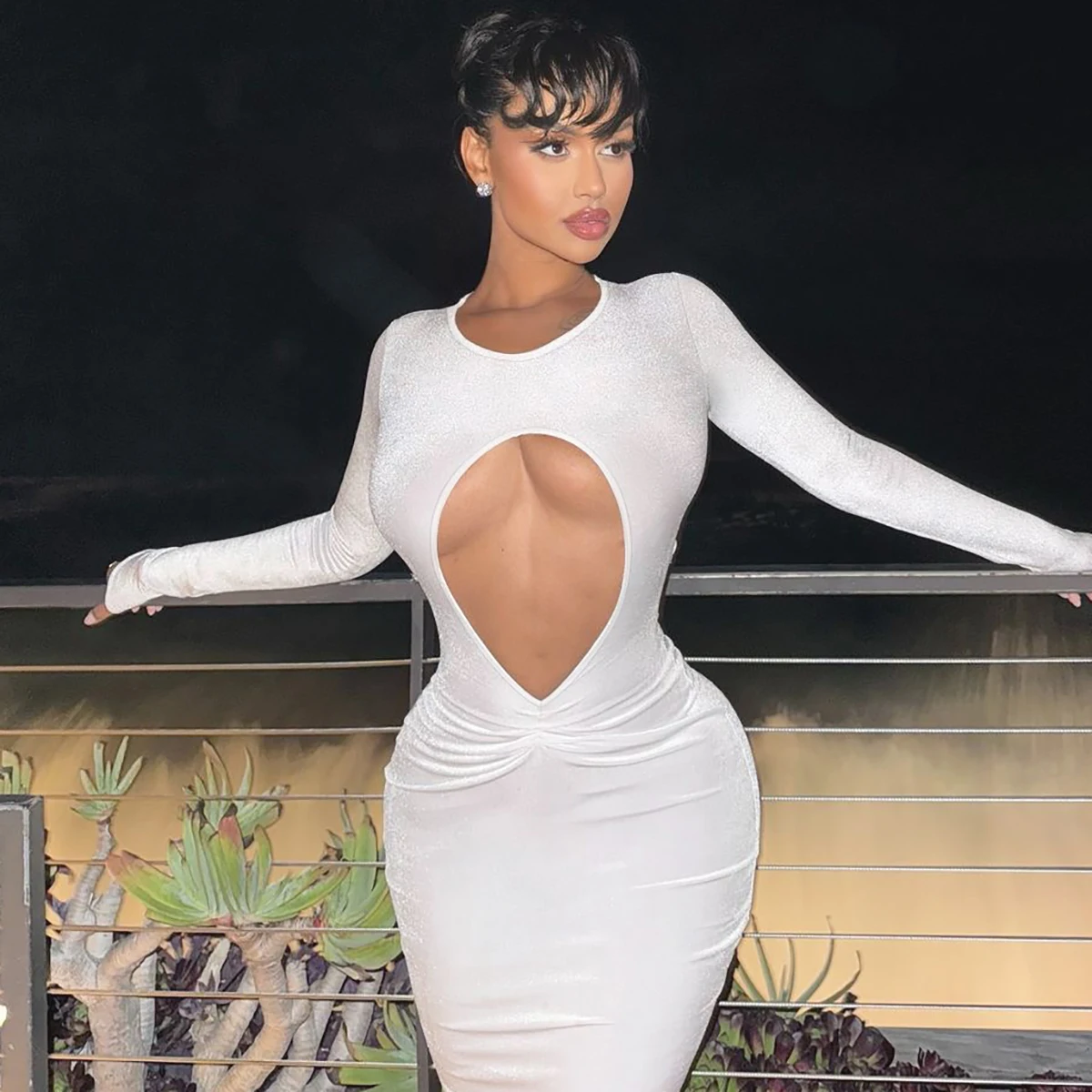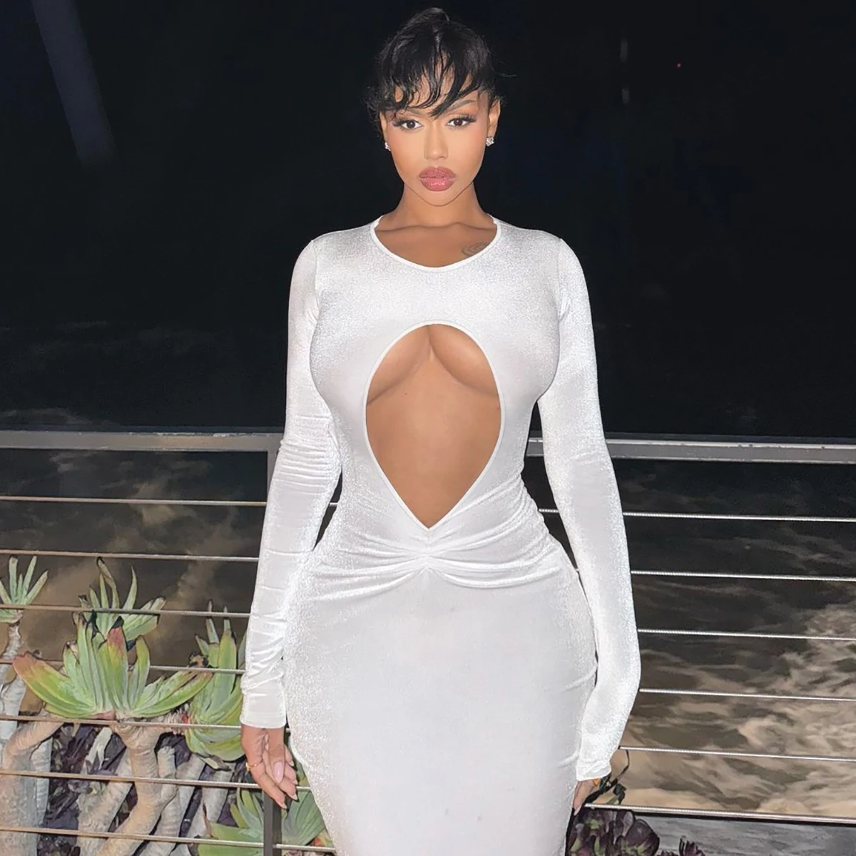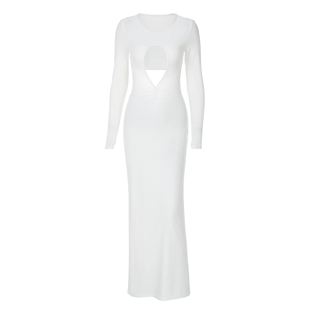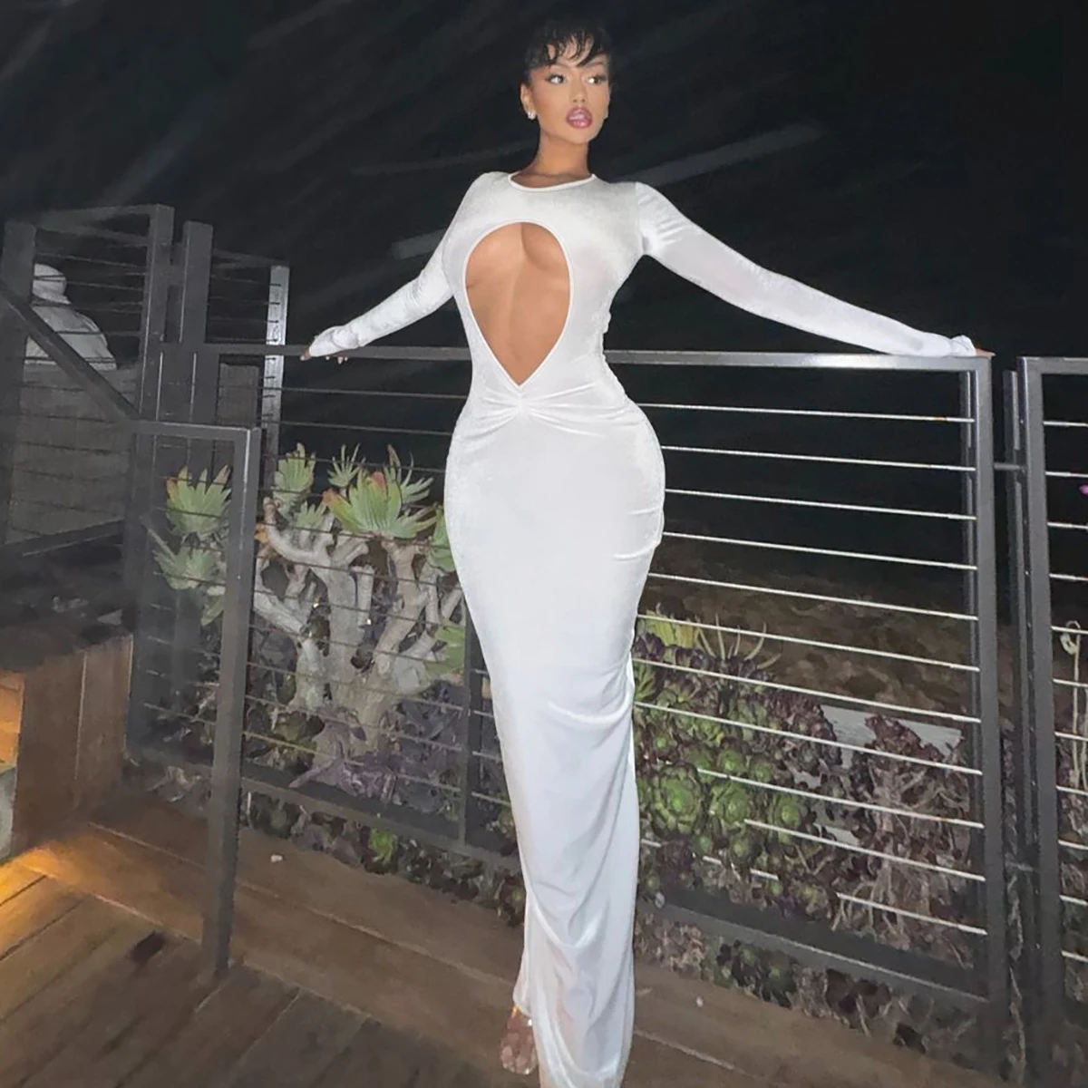 White Long Sleeve Hollow Out Sexy Slim Maxi Prom Dress Fall Winter Women Fashion Y2K Outfits Birthday Party
