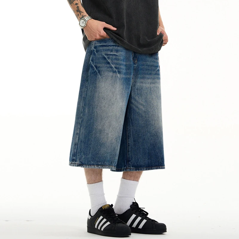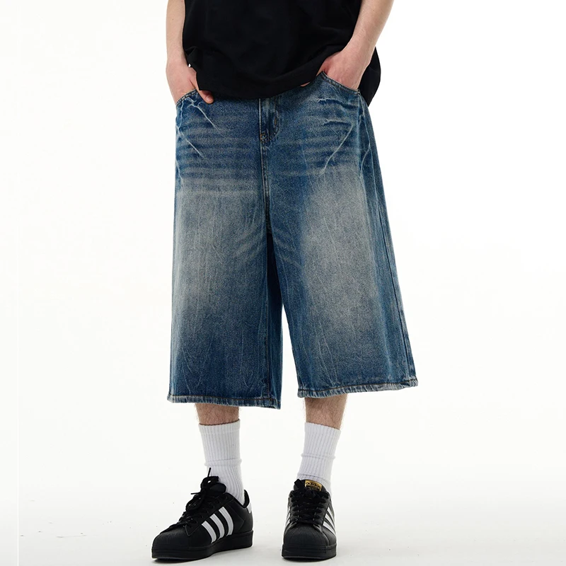 Wide Leg Men's Short Jeans American Washed Lightning Pattern Male Denim Shorts Loose Chic Men Bottoms Summer 9W1474