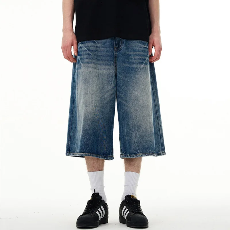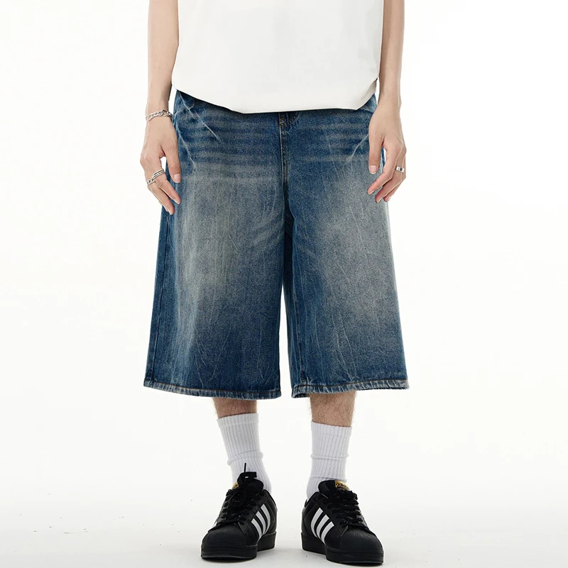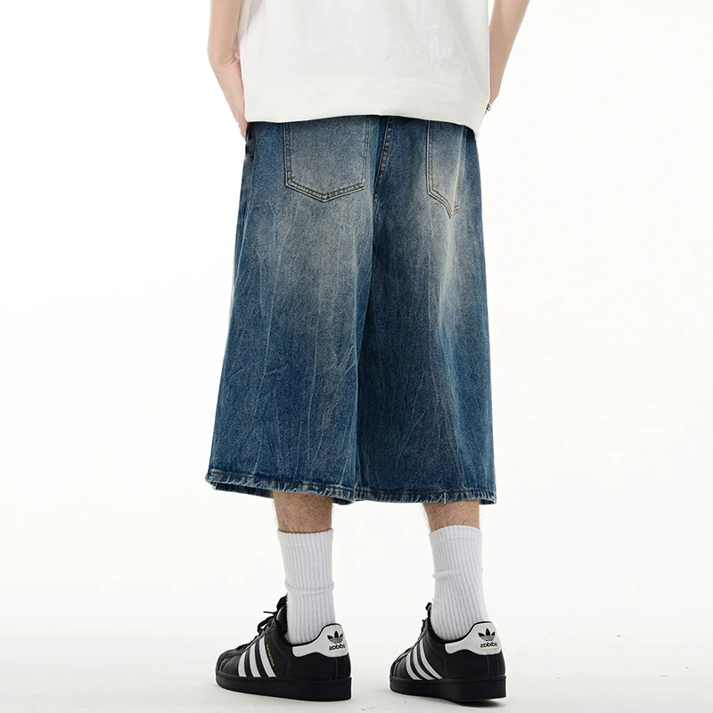 Load image into Gallery viewer, Wide Leg Men's Short Jeans American Washed Lightning Pattern Male Denim Shorts Loose Chic Men Bottoms Summer 9W1474