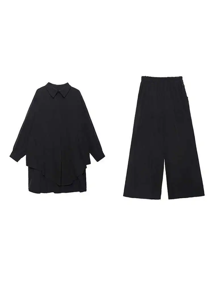 Wide Leg Pants Big Size Two Piece Suit New Lapel Long Sleeve Black Loose Fit Women Fashion Tide Spring Autumn 2025 1DF0685