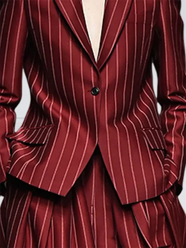 Winter Clothes Trendy Formal Suits Coat for Women 2024 Autumn Long Sleeves Striped Women's England Jacket Outerwears
