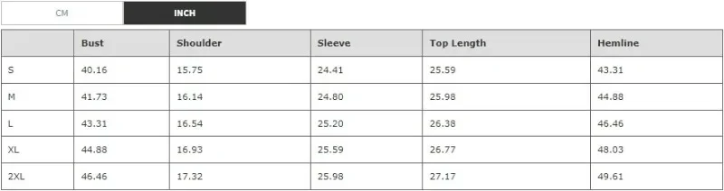 Coat Size Table: