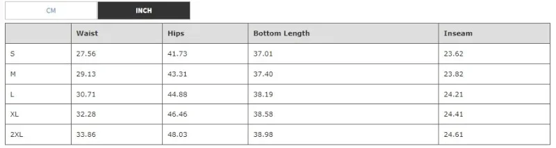 Pant Size Table: