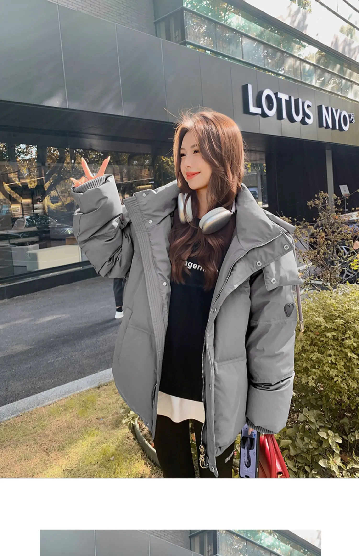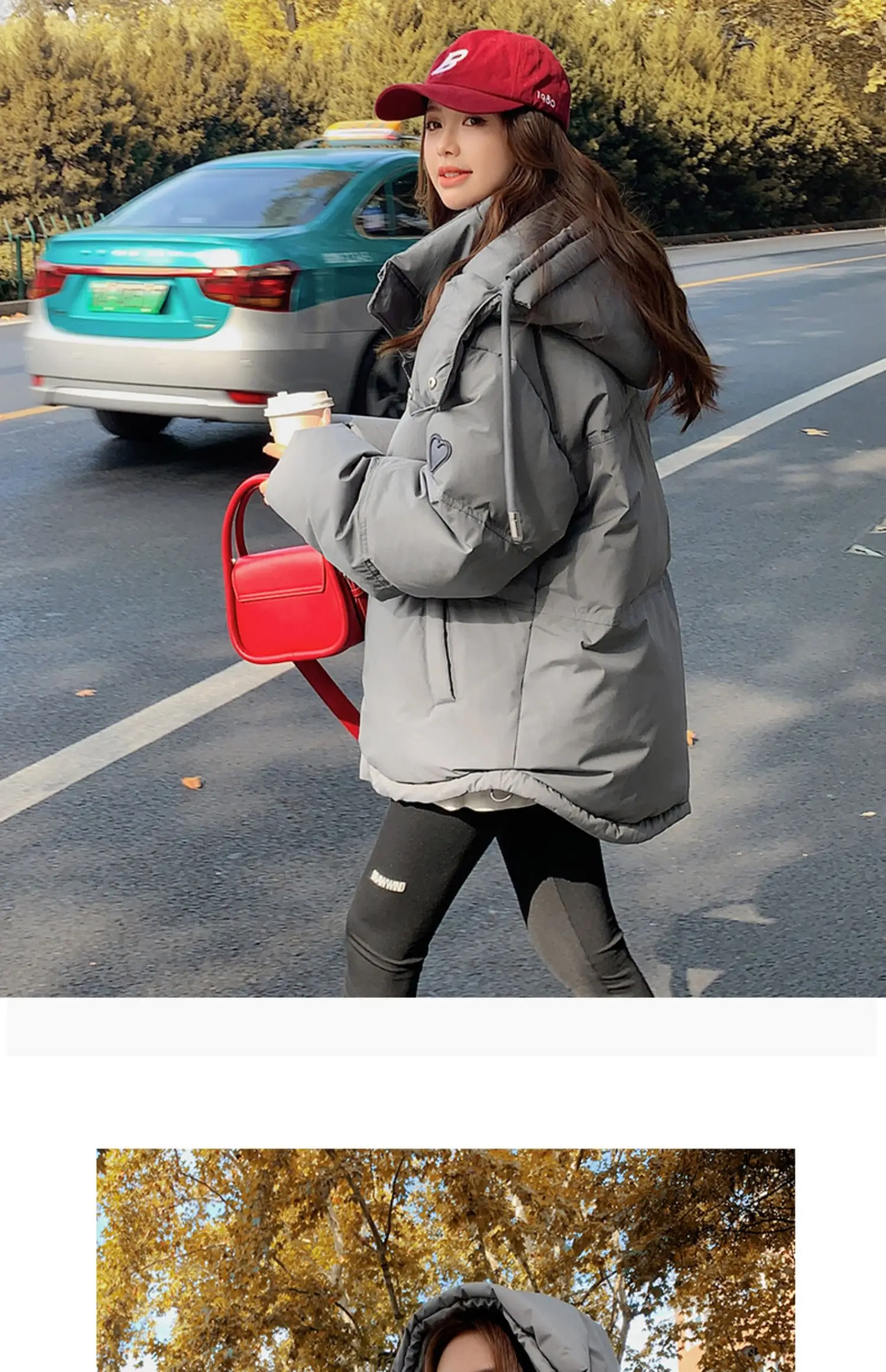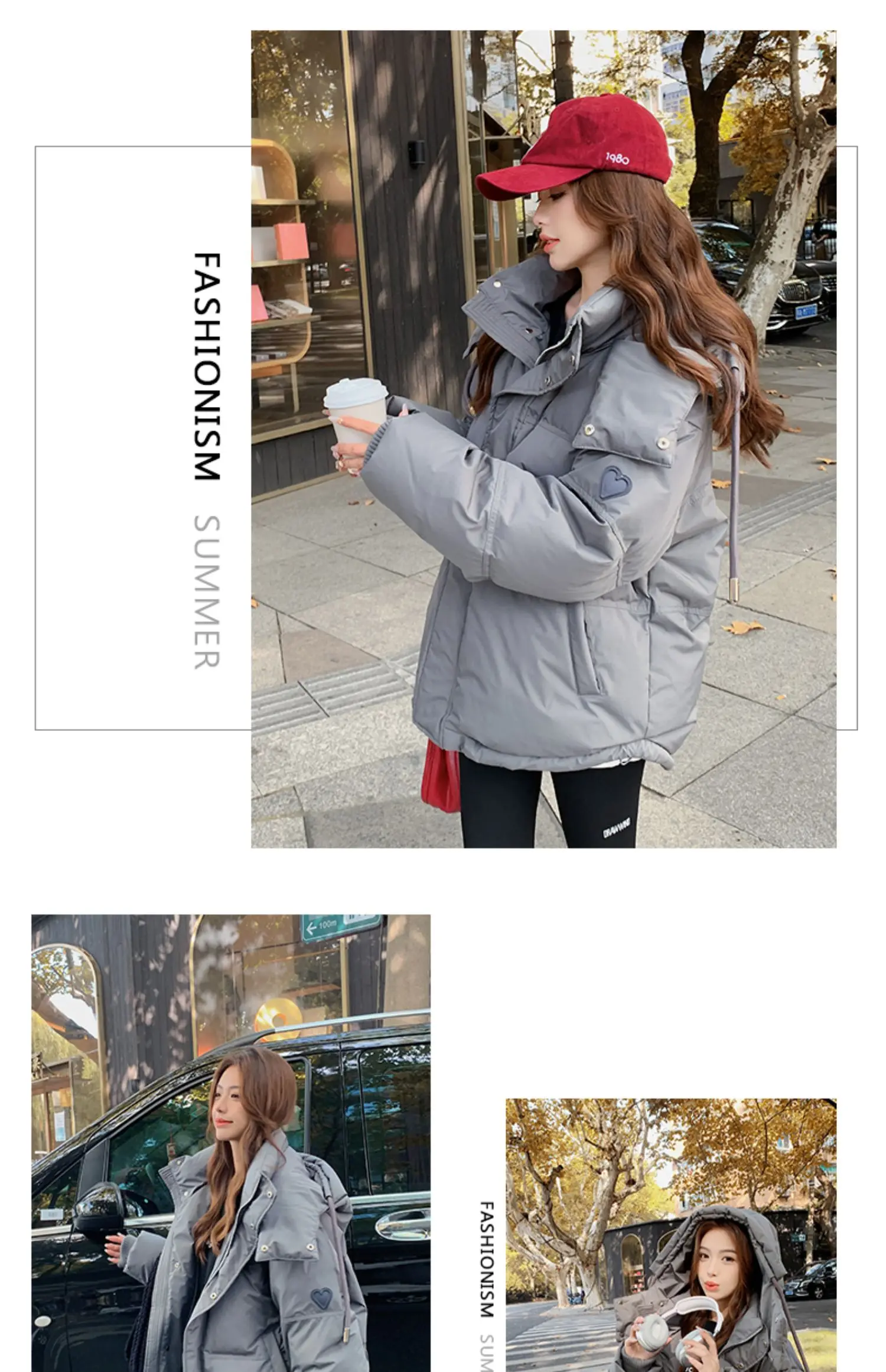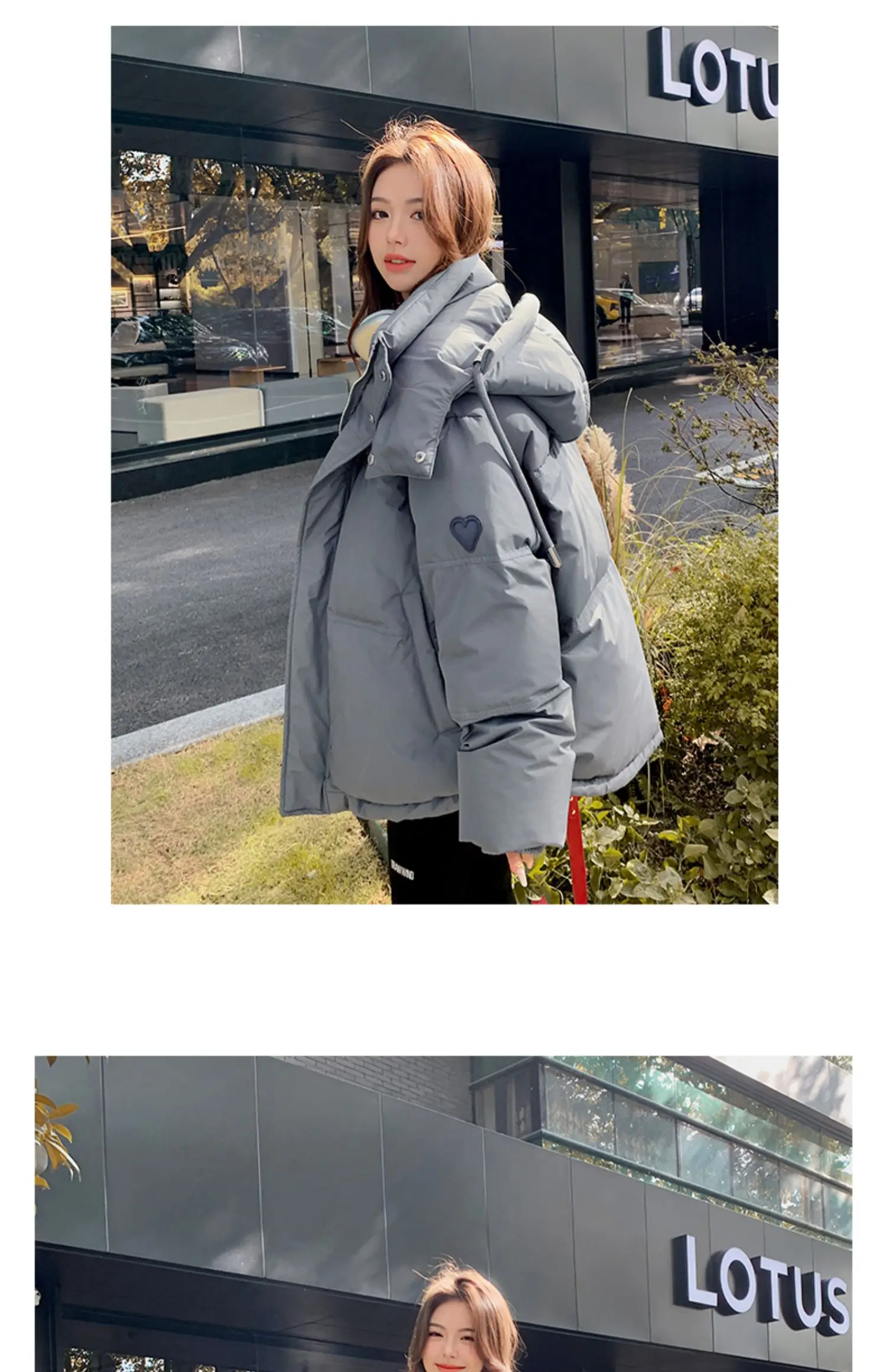 Winter Puffer Jackets Women Thick Warm Down Cotton Padded Coat Female Fashion Oversize Hooded Grey Loose Short Parkas Mujer 2023