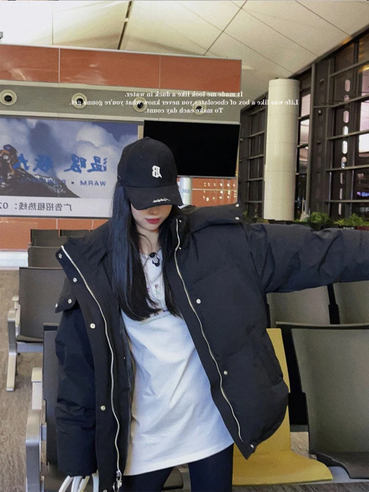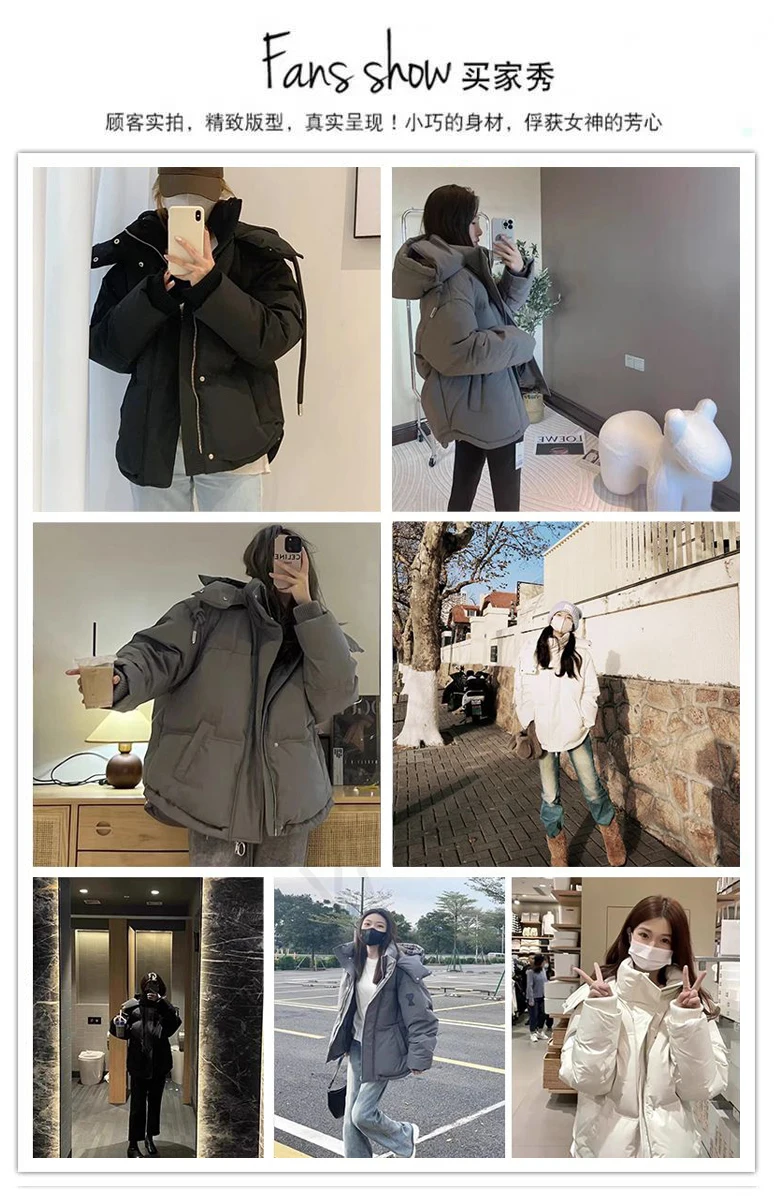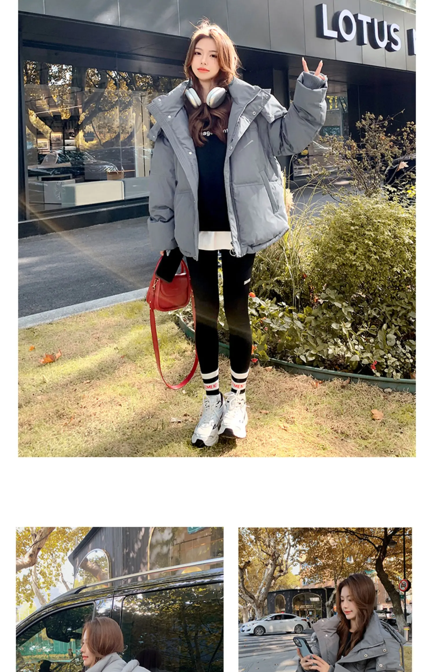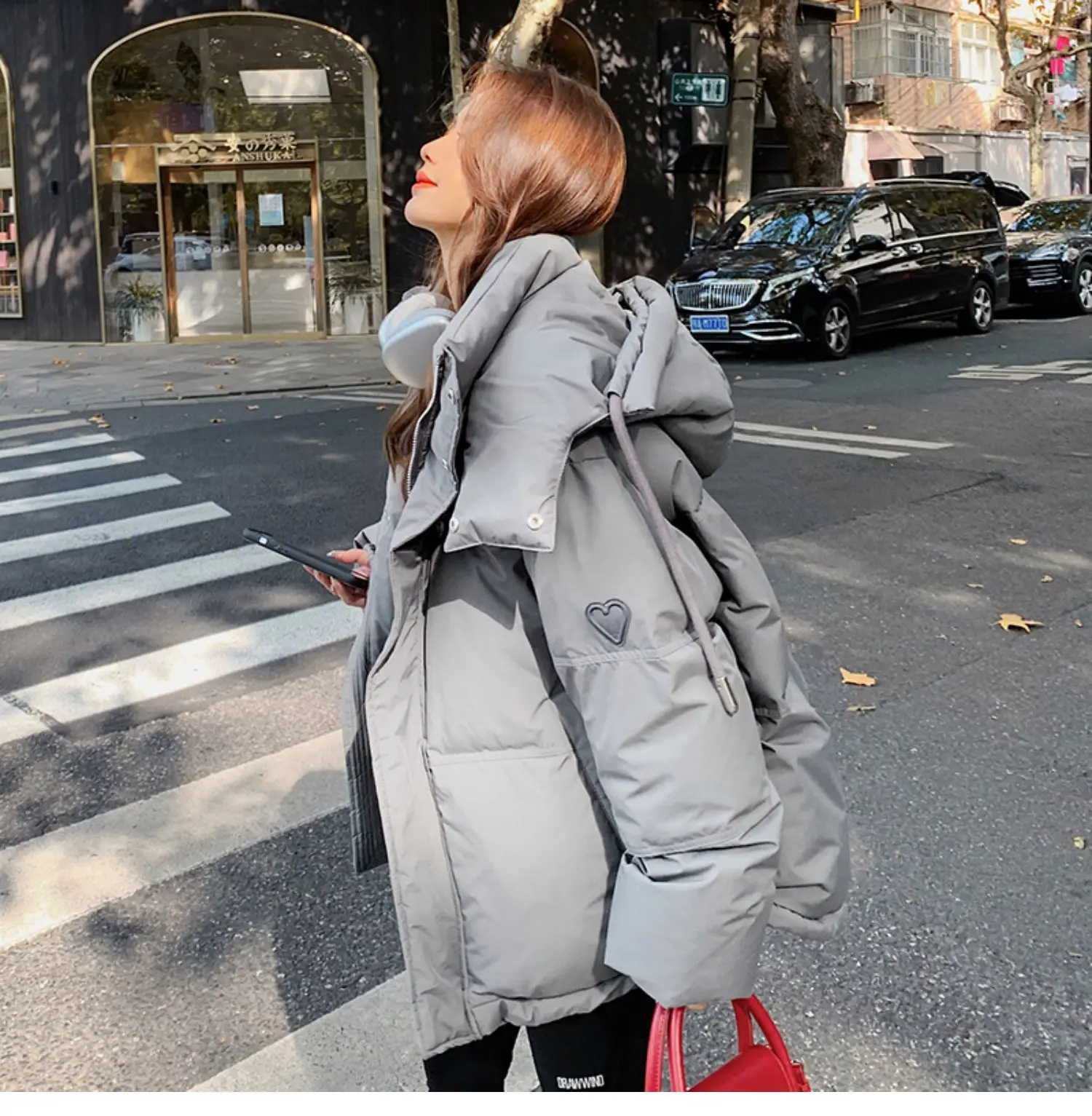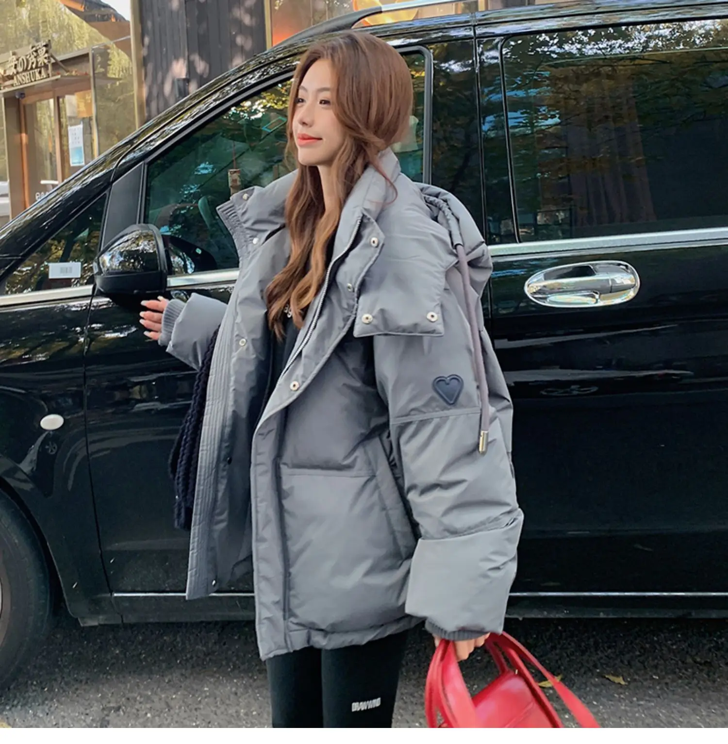 Winter Puffer Jackets Women Thick Warm Down Cotton Padded Coat Female Fashion Oversize Hooded Grey Loose Short Parkas Mujer 2023