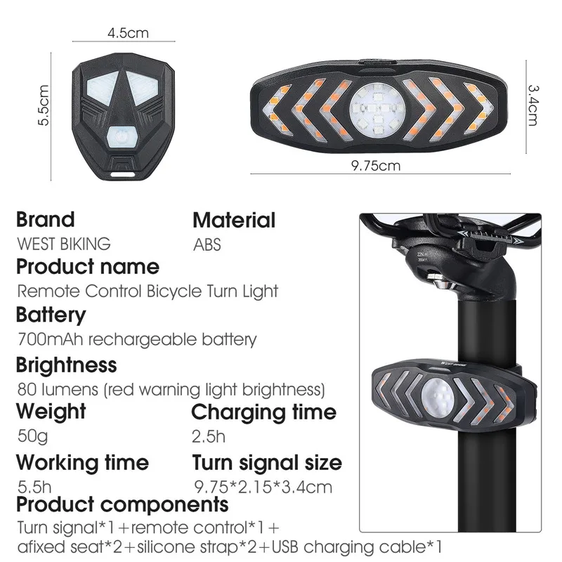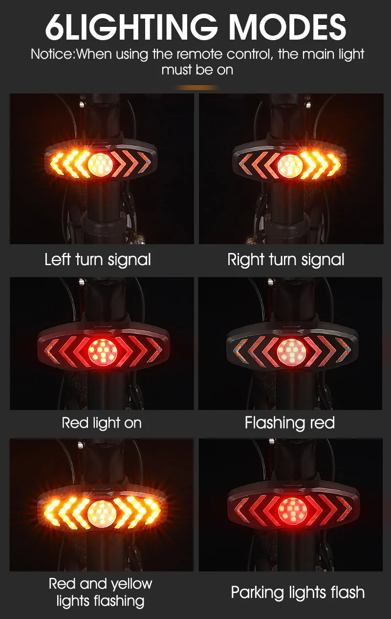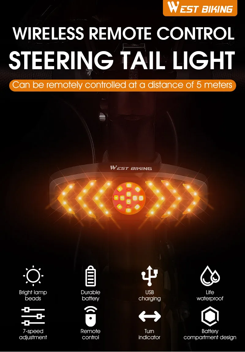 Wireless Bike Taillight Remote Turn Beep Signal MTB Bicycle Light Direction Indicator USB Rechargeable Rear Lights