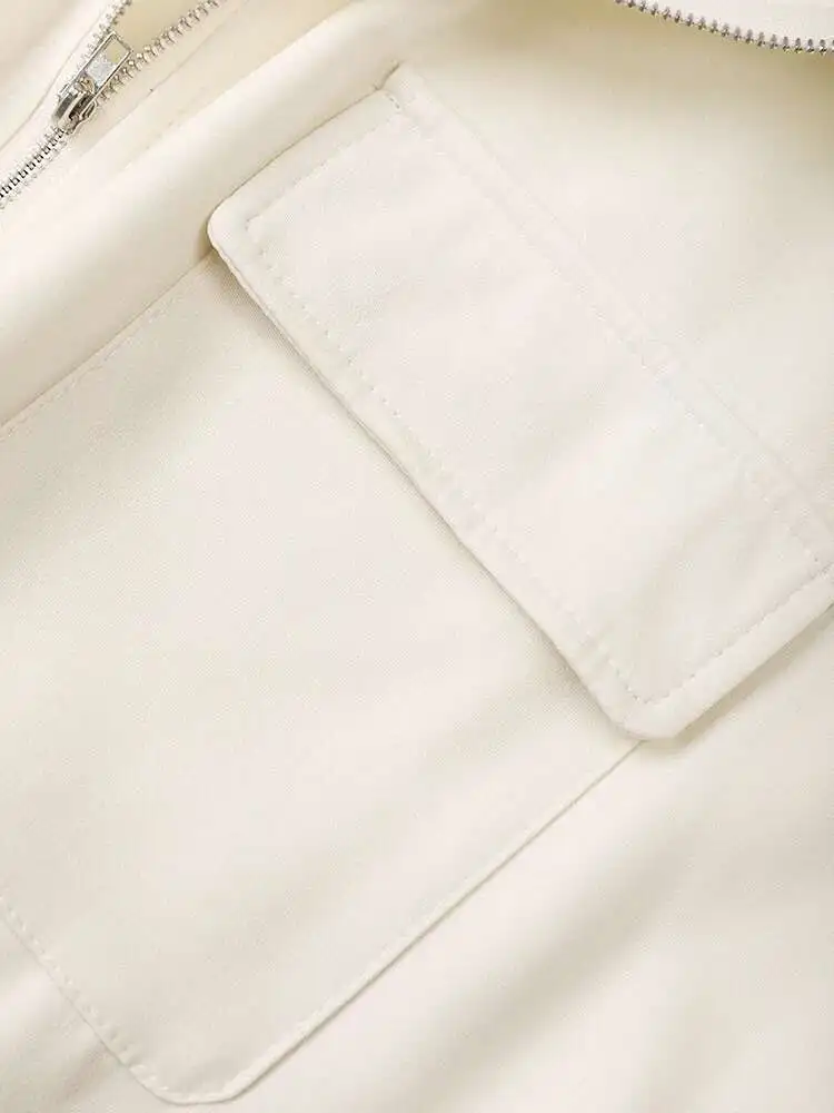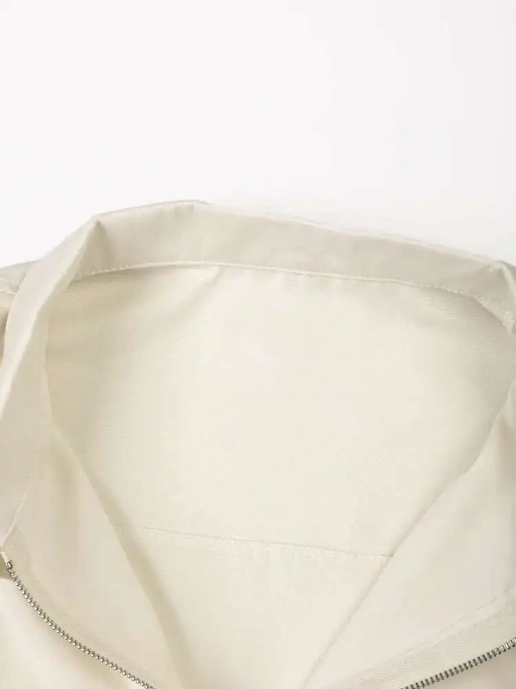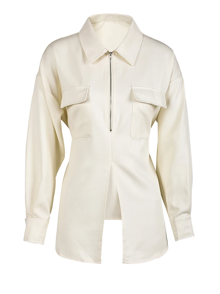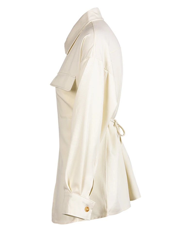 Women Beige Zipper Pocket Back Bandage Blouse New Lapel Long Sleeve Loose Fit Shirt Fashion Spring Autumn 2025 1DF149100