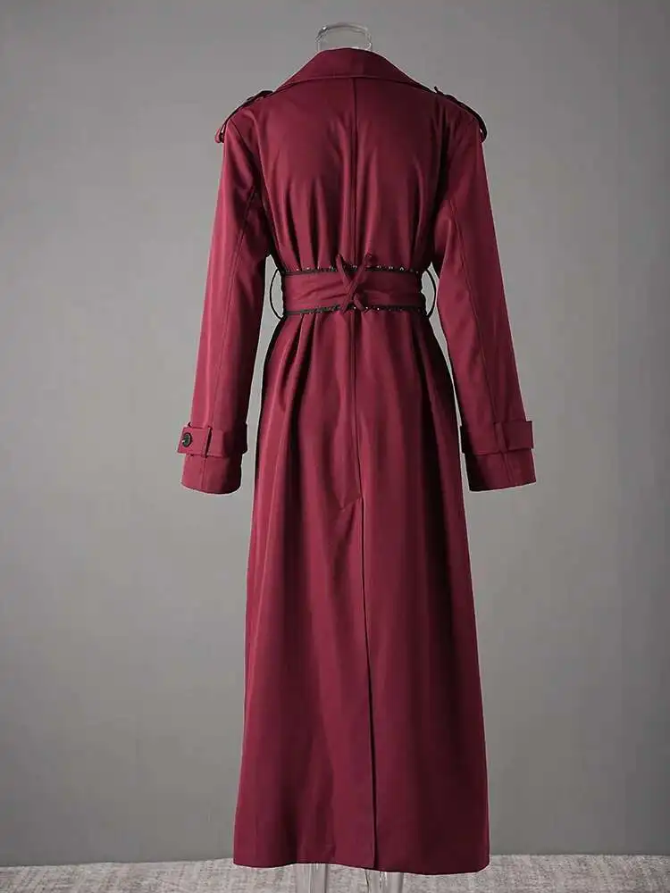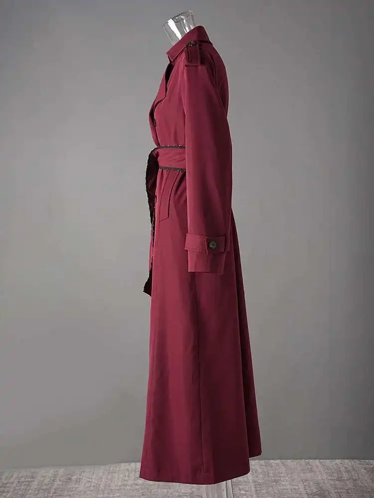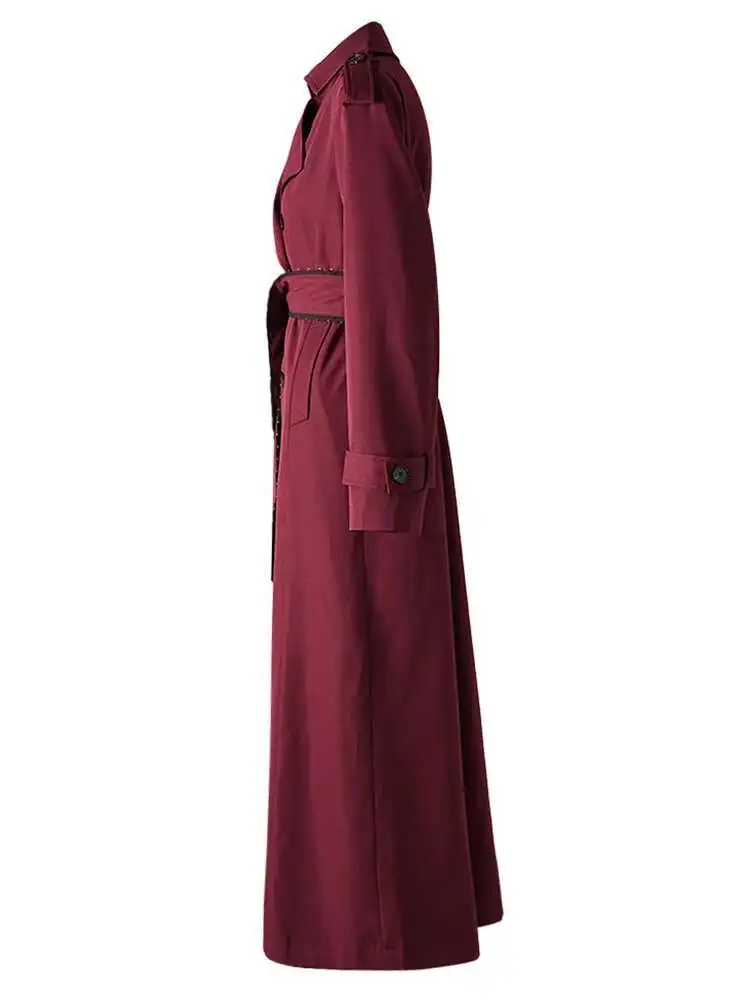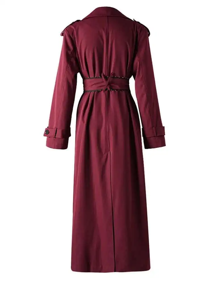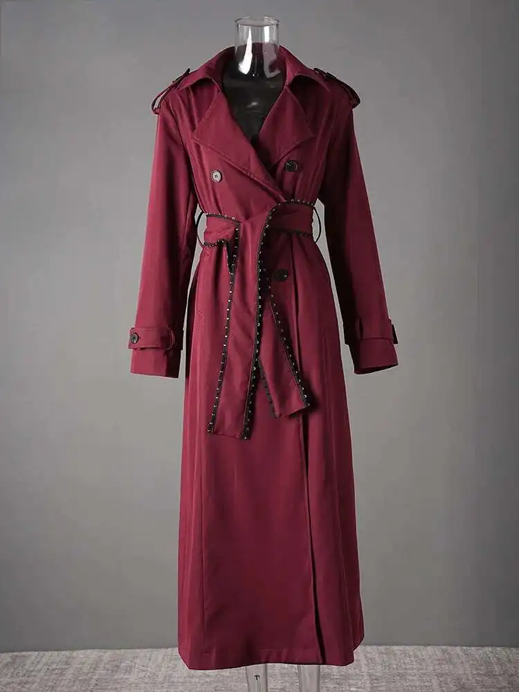 Women Black Belted Big Size Long Elegant Trench New Lapel Long Sleeve Windbreaker Fashion Tide Spring Autumn 2025 CPDB265