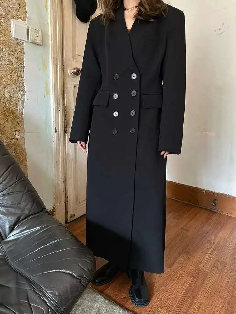 Women Black Brief Double Breasted Long Elegant Blazer New Lapel Long Sleeve Jacket Fashion Tide Spring Autumn 2025 1LD1678