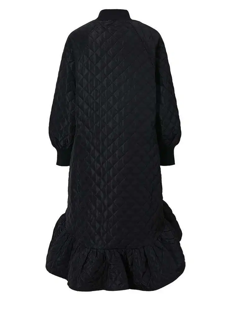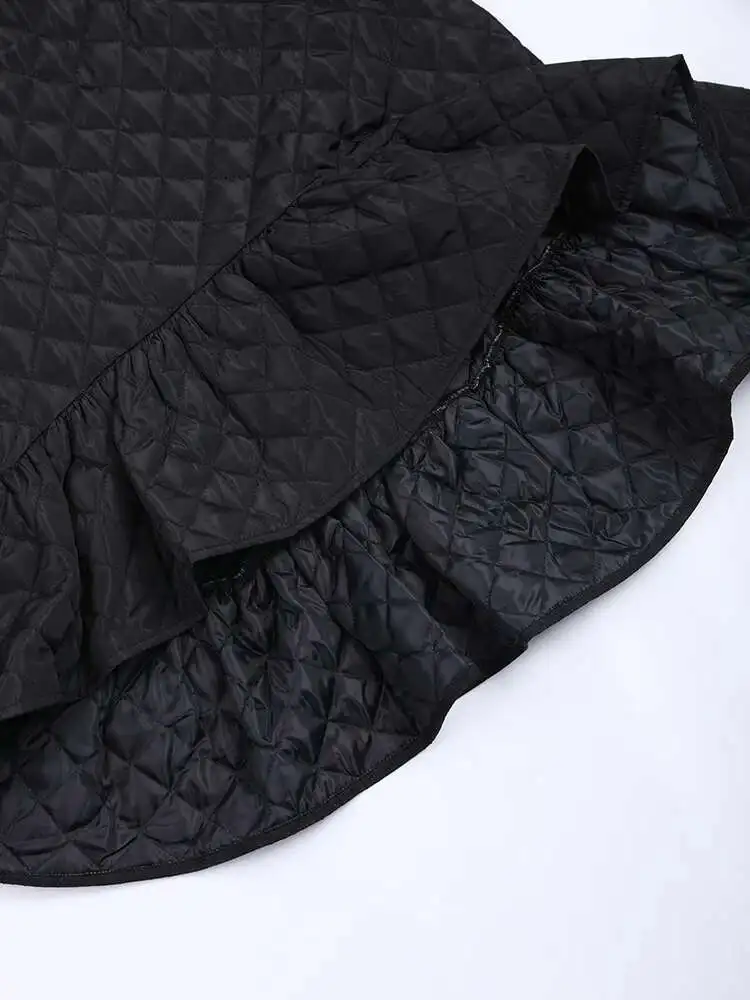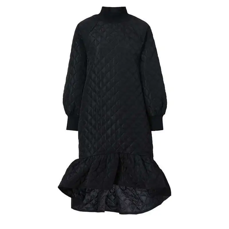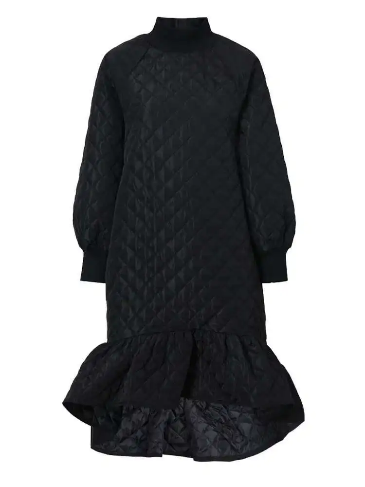 Women Black Cotton-padded Ruffles Dress New Turtleneck Long Sleeve Loose Fit Fashion Tide Autumn Winter 2025 1M9310