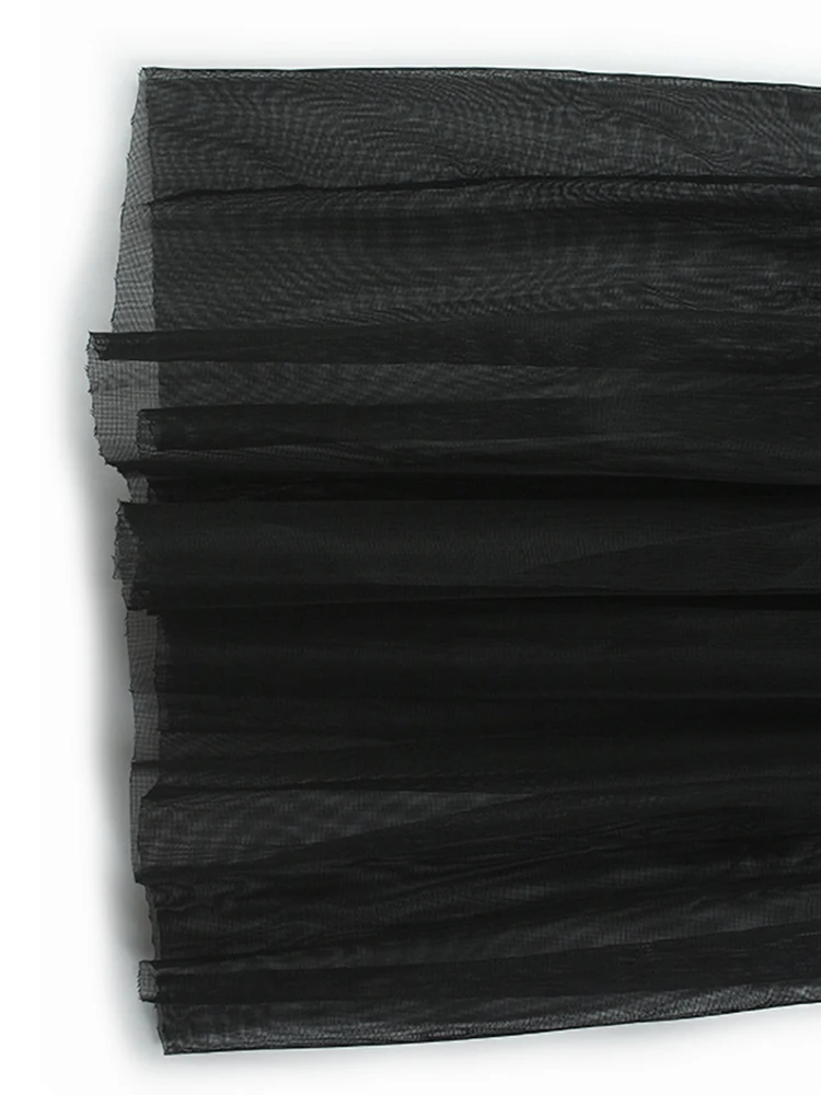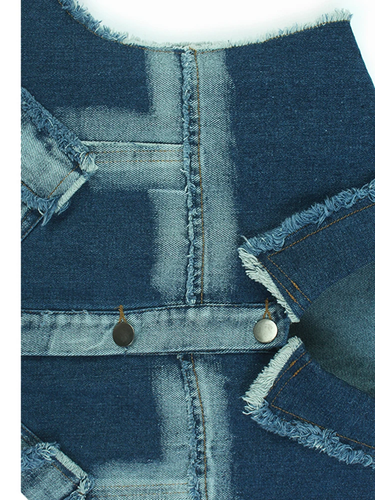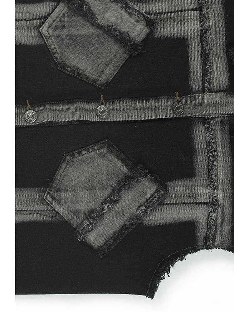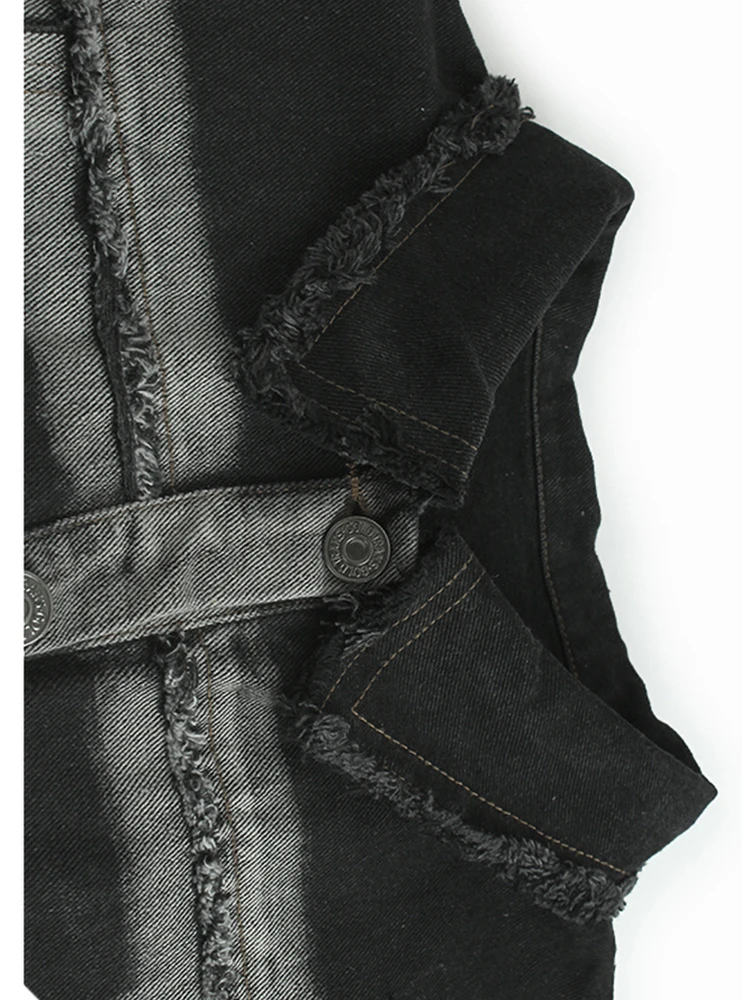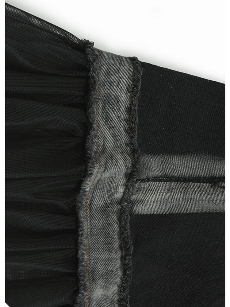 Women Black Denim Burr Mesh Spliced Big Size Vest Dress New Lapel Sleeveless Fashion Tide Spring Autumn 2025 1DJ1352
