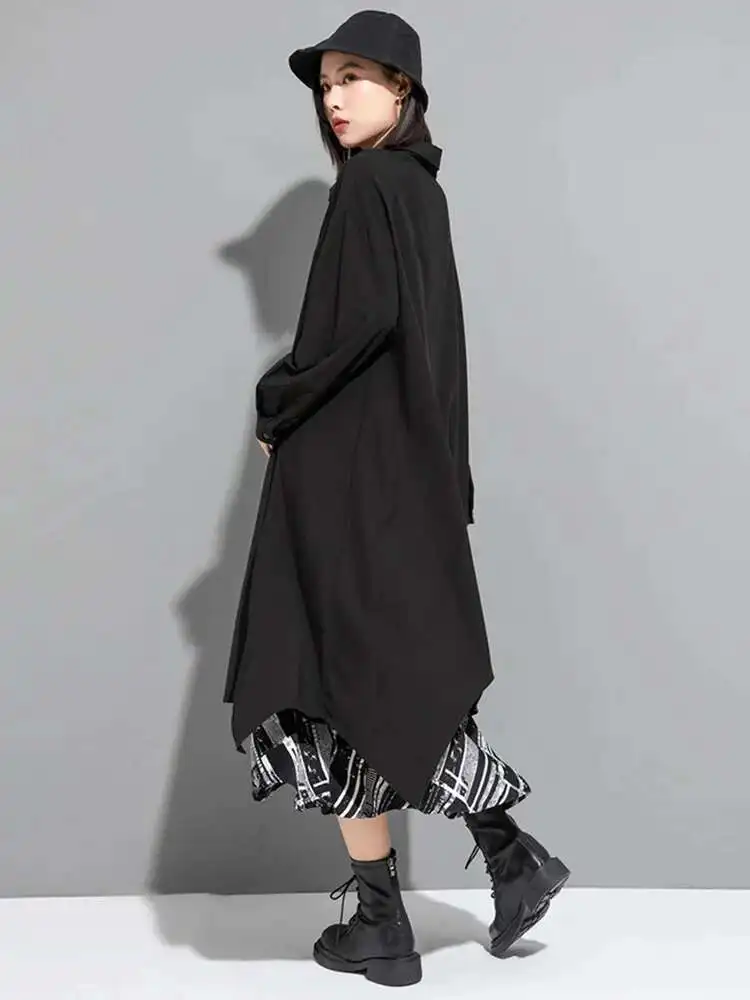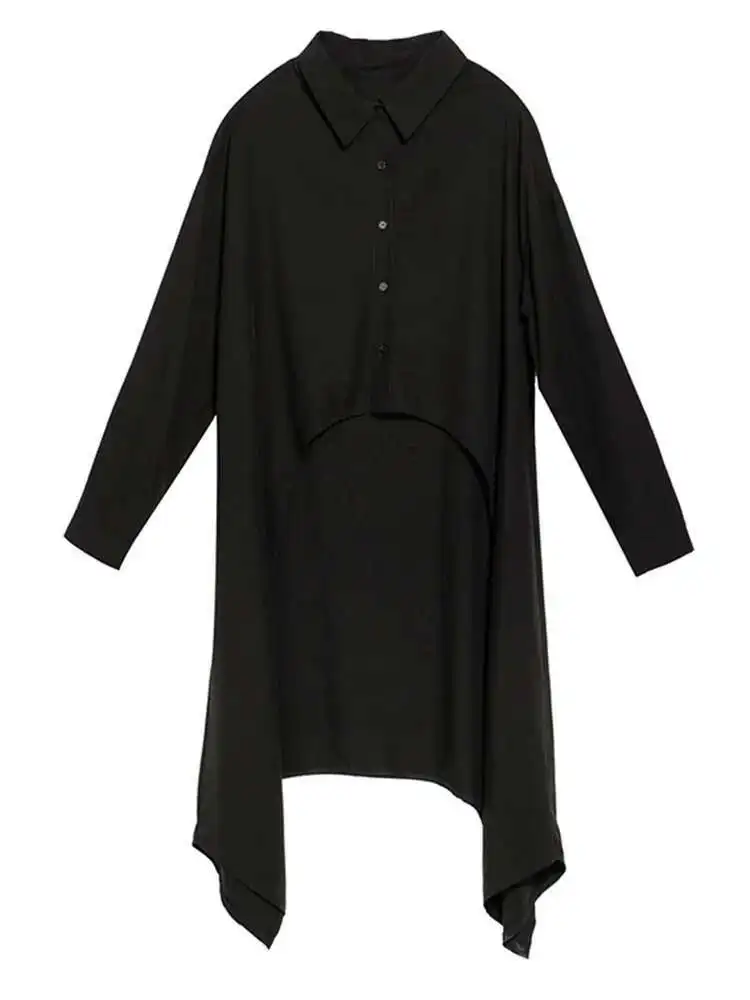Women Black Irregular Back Long Big Size Blouse New Lapel Long Sleeve Loose Fit Shirt Fashion Spring Autumn 2025 1DF6517