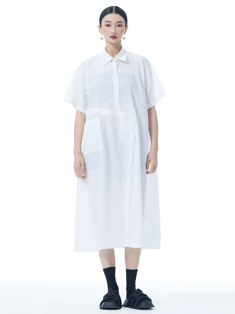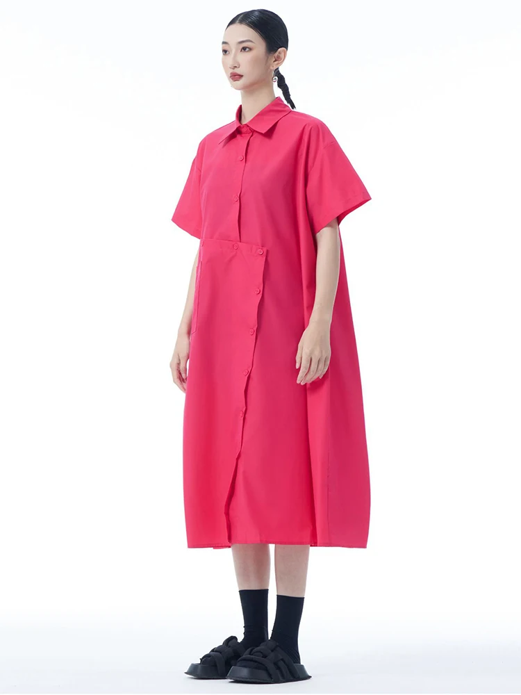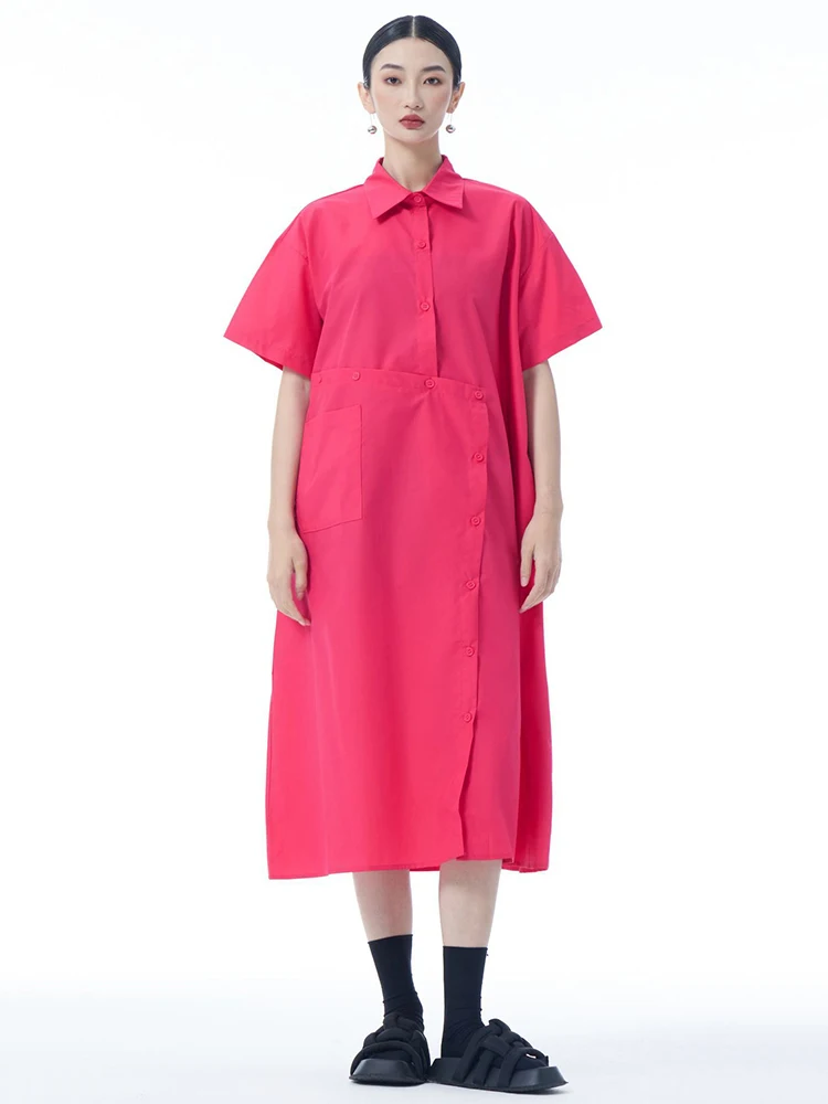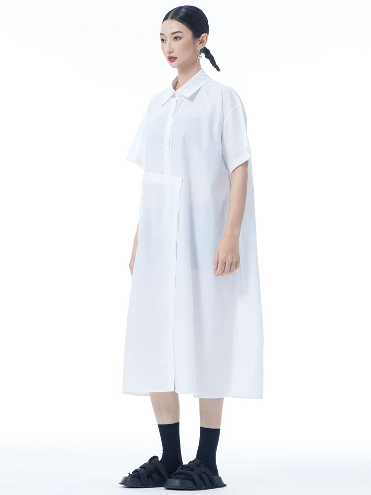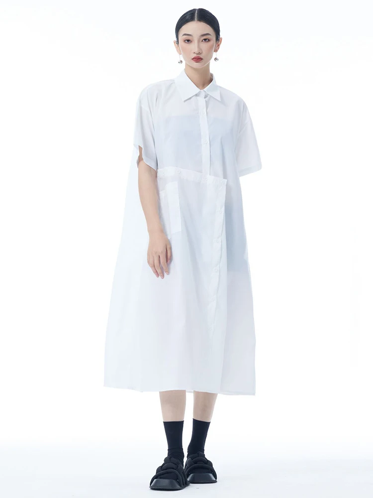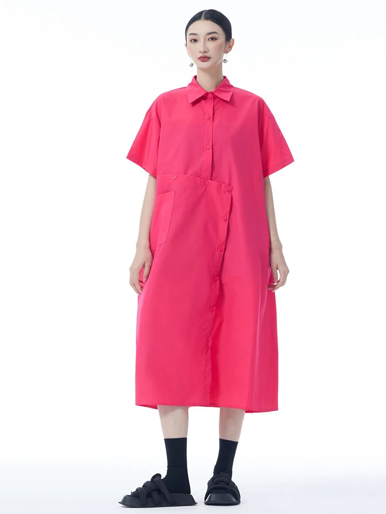 Women Black Irregular Button Big Size Midi Shirt Dress New Lapel Short Sleeve Fashion Tide Spring Summer 2025 1DJ0954