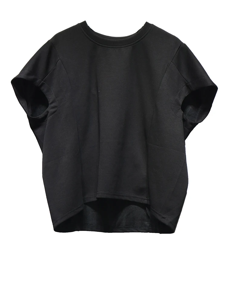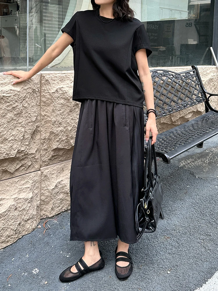 Women Black Irregular Hem Big Size Causal T-shirt New Round Neck Short Sleeve Fashion Tide Spring Summer 2025 1DJ1381
