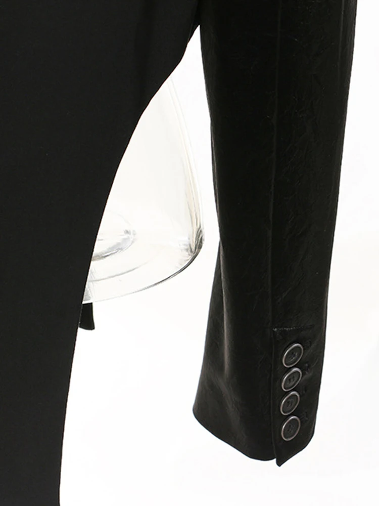 Women Black Irregular Pu Leather Blazer New Lapel Long Sleeve Loose Fit Jacket Fashion Tide Spring Autumn 2025 17A7466