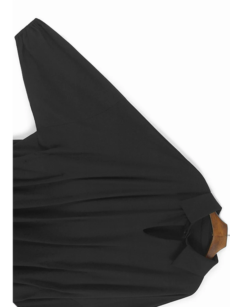 Women Black Pleated Hollow Out Big Size Elegant Mini Dress New V-Neck Long Sleeve Fashion Tide Spring Autumn 2025 1DH9549