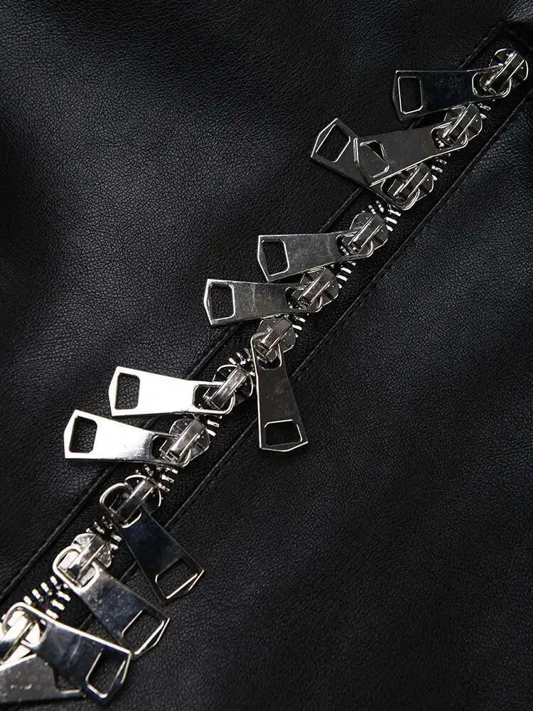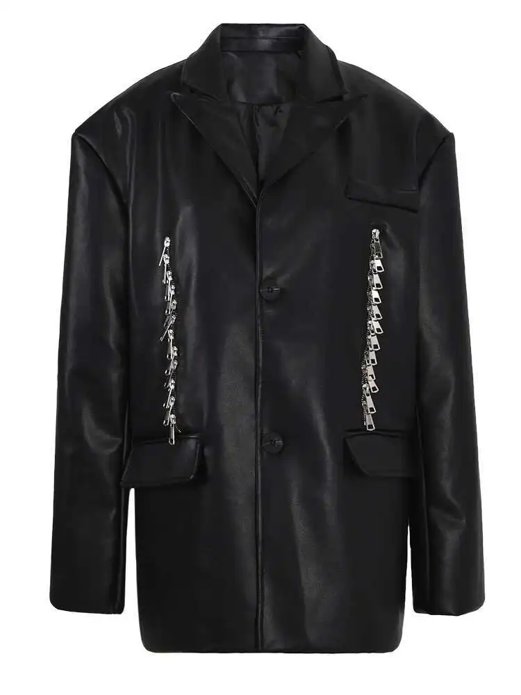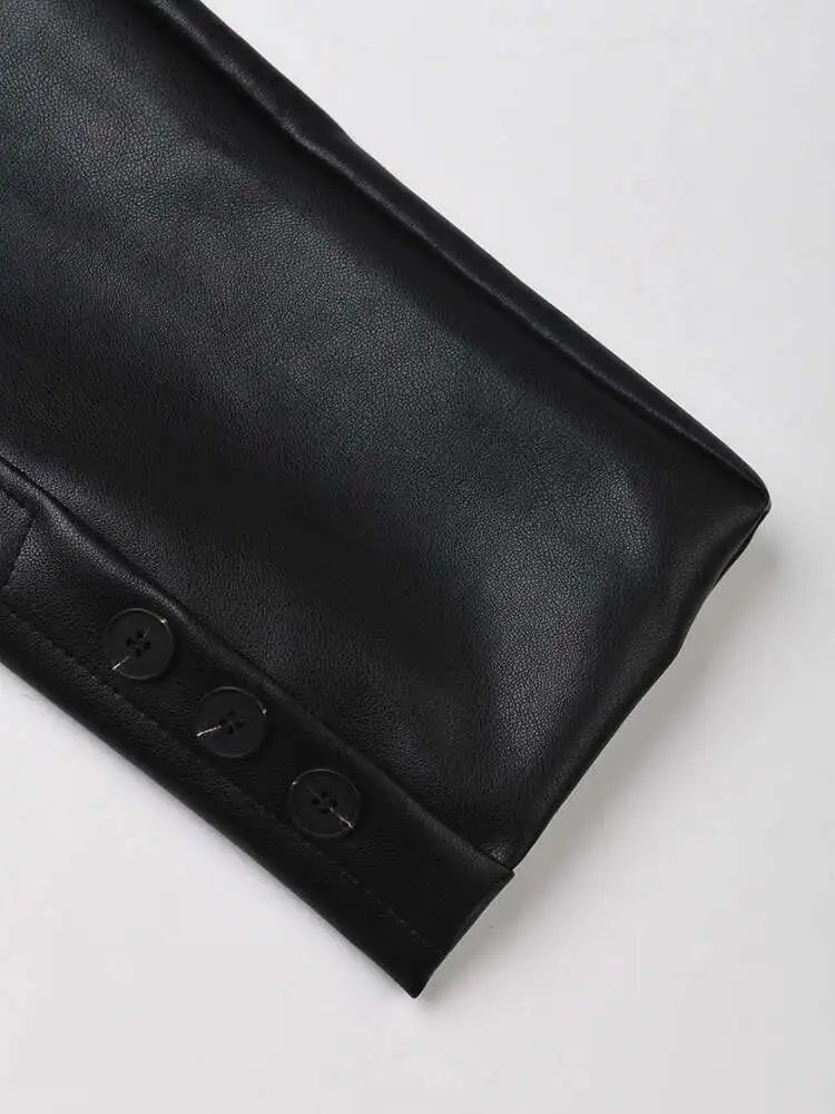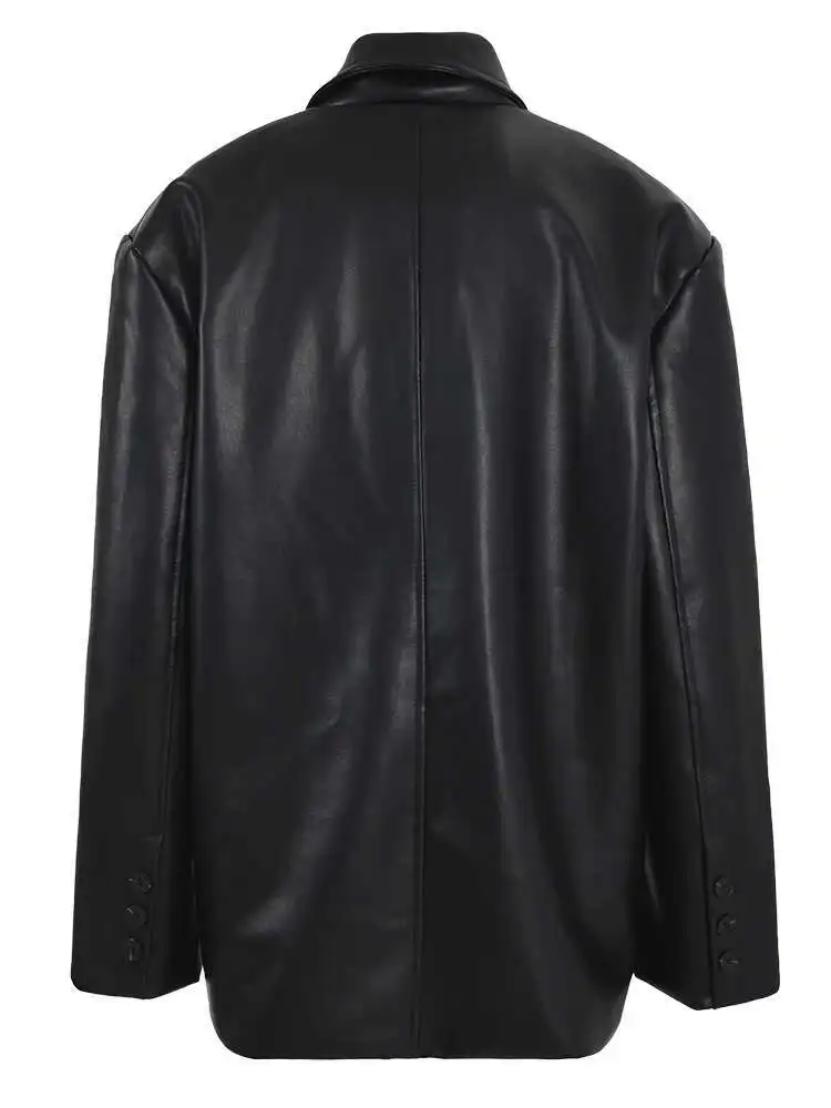 Women Black Pu Leather Zipper Big Size Casual Blazer New Lapel Long Sleeve Jacket Fashion Tide Spring Autumn 2025 CPG1010