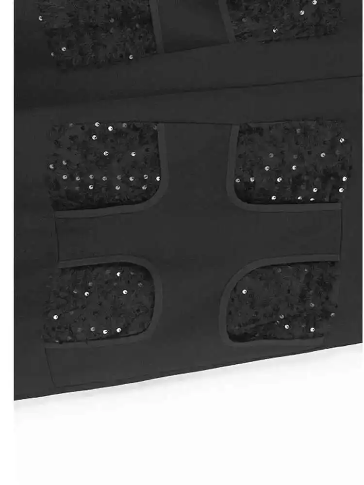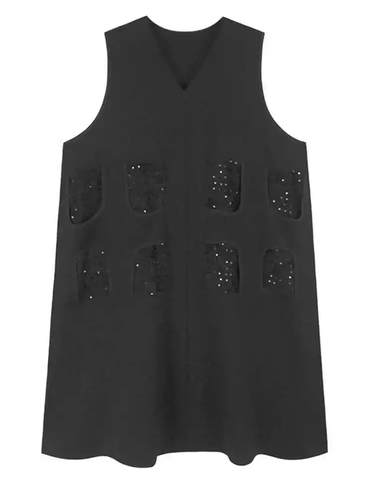 Women Black Sequins Spliced Big Size Midi Vest Dress New V-Neck Sleeveless Fashion Tide Spring Autumn 2025 1DH9971