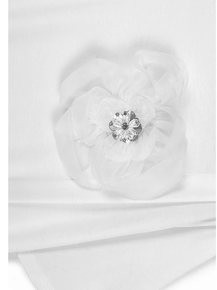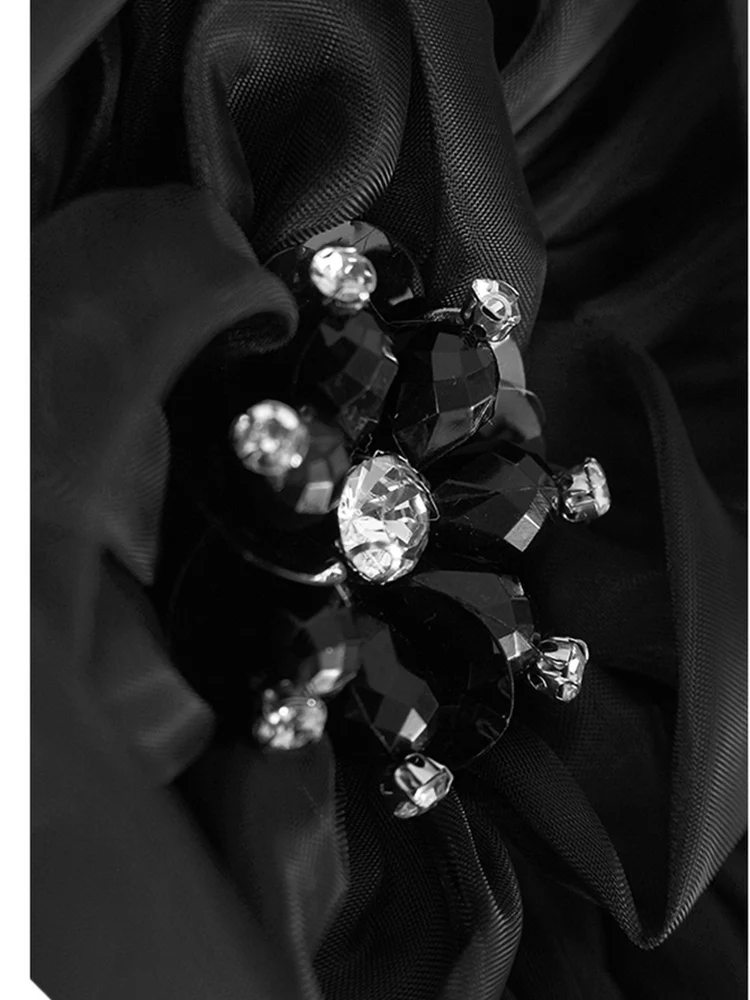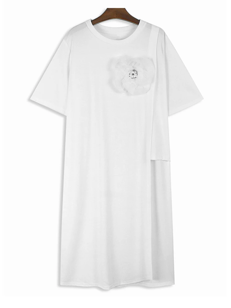 Women Black Three-dimensional Flower Big Size Midi Dress New Round Neck Short Sleeve Fashion Spring Summer 2025 1DJ1191