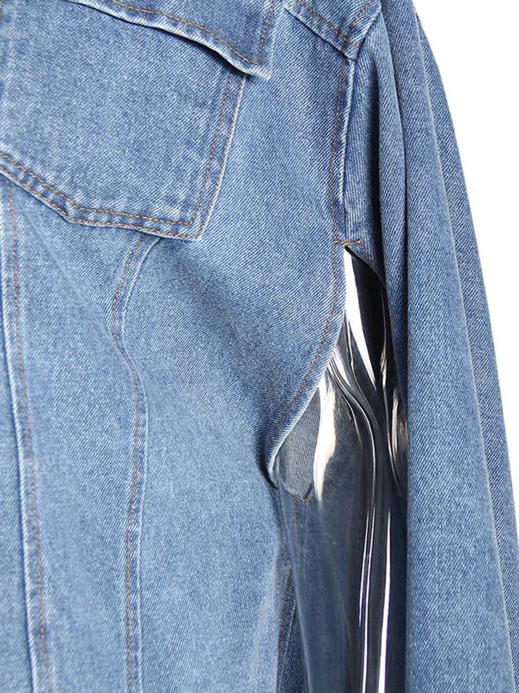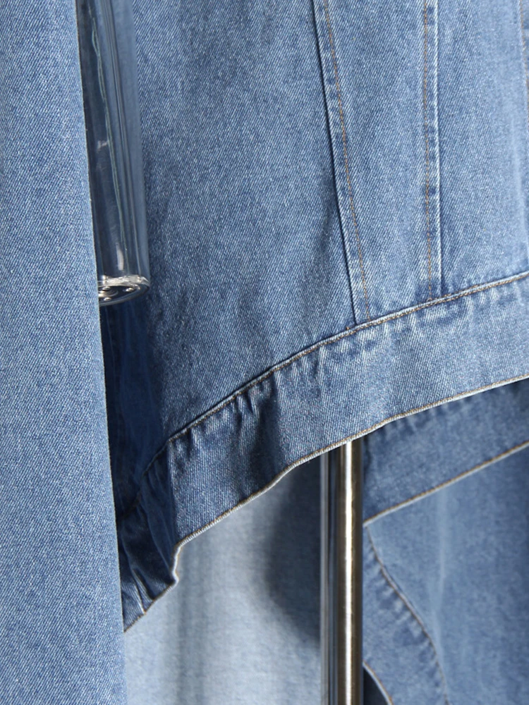 Women Blue Denim Irregular Big Size Cloak Trench New Lapel Long Sleeve Windbreaker Fashion Tide Spring Autumn 2025 7AB6483