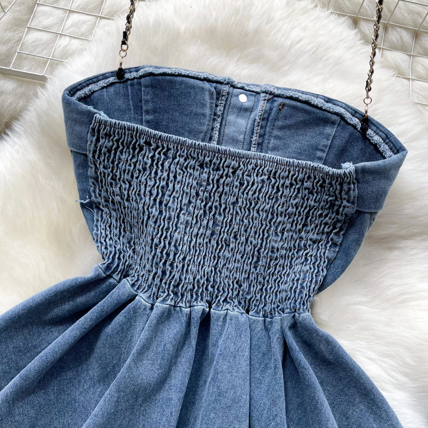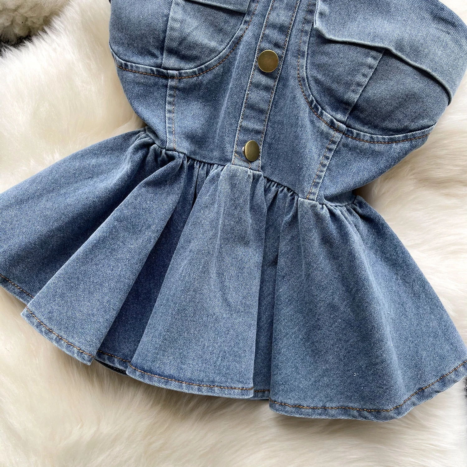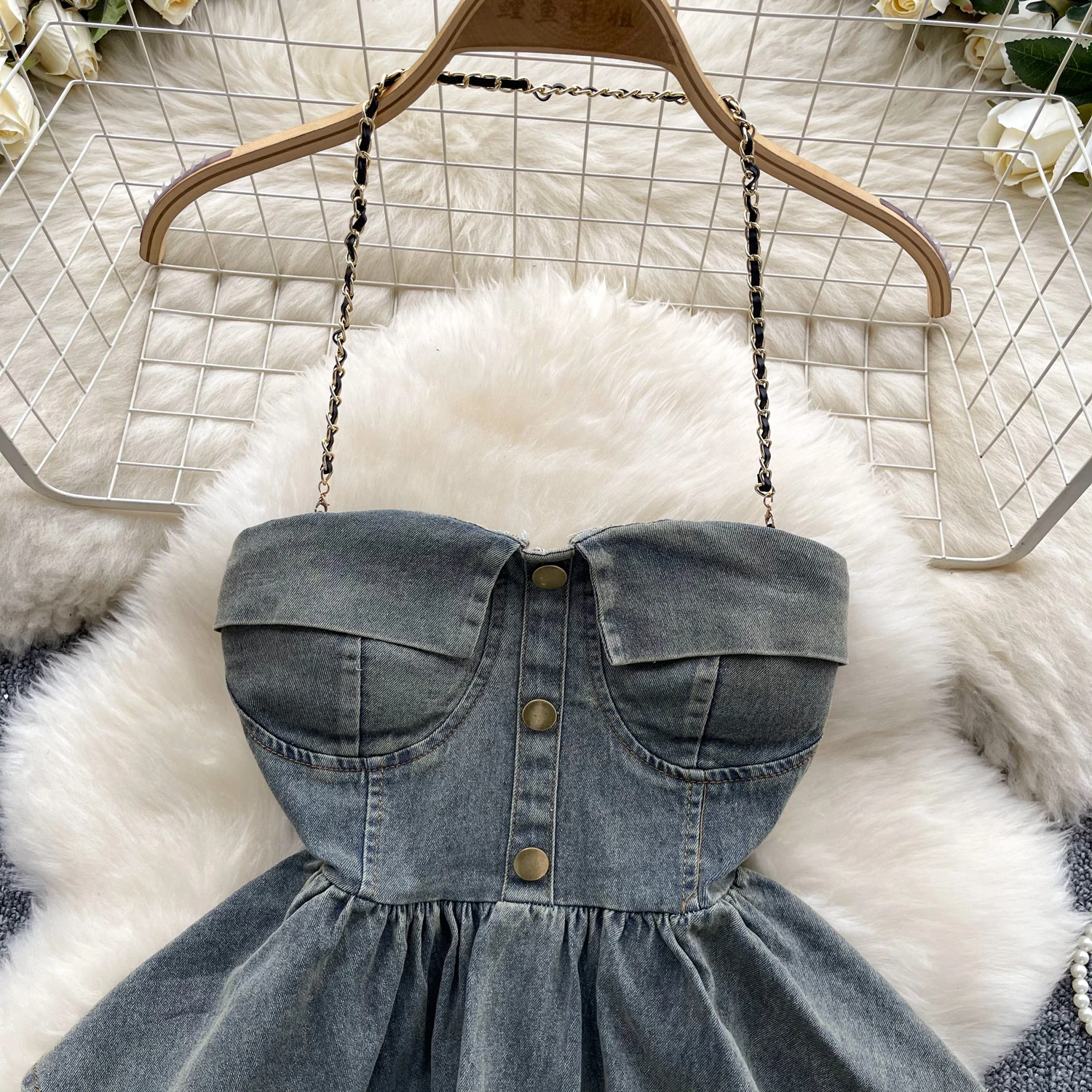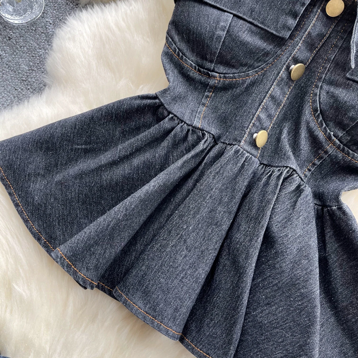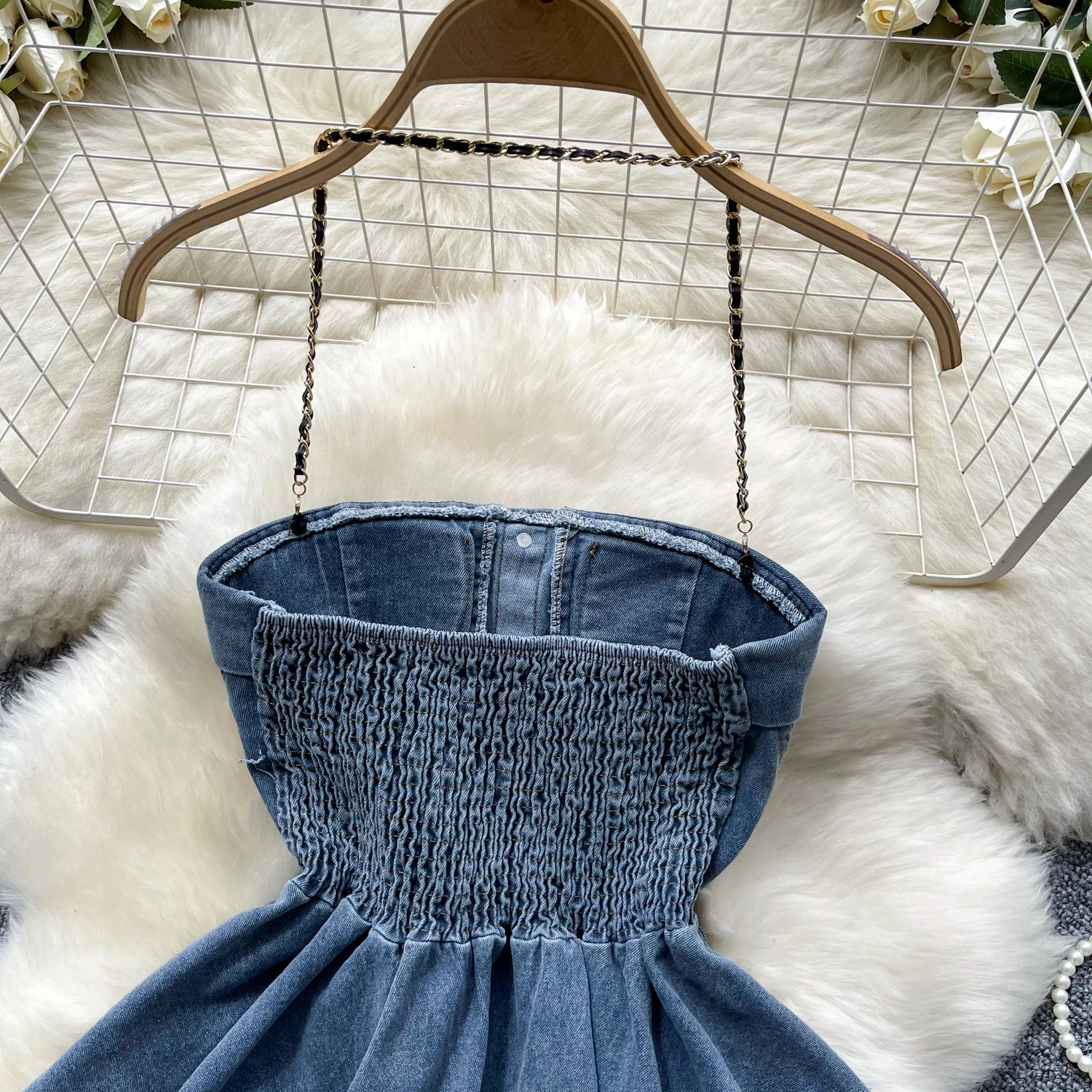 Women Blue Gray Sexy Club Vacation Denim Slim Short Halter Tops Summer Black Backless Ruffle Edge Party Jean Vest Streetwear New
