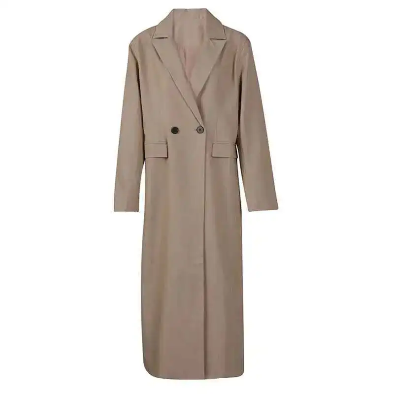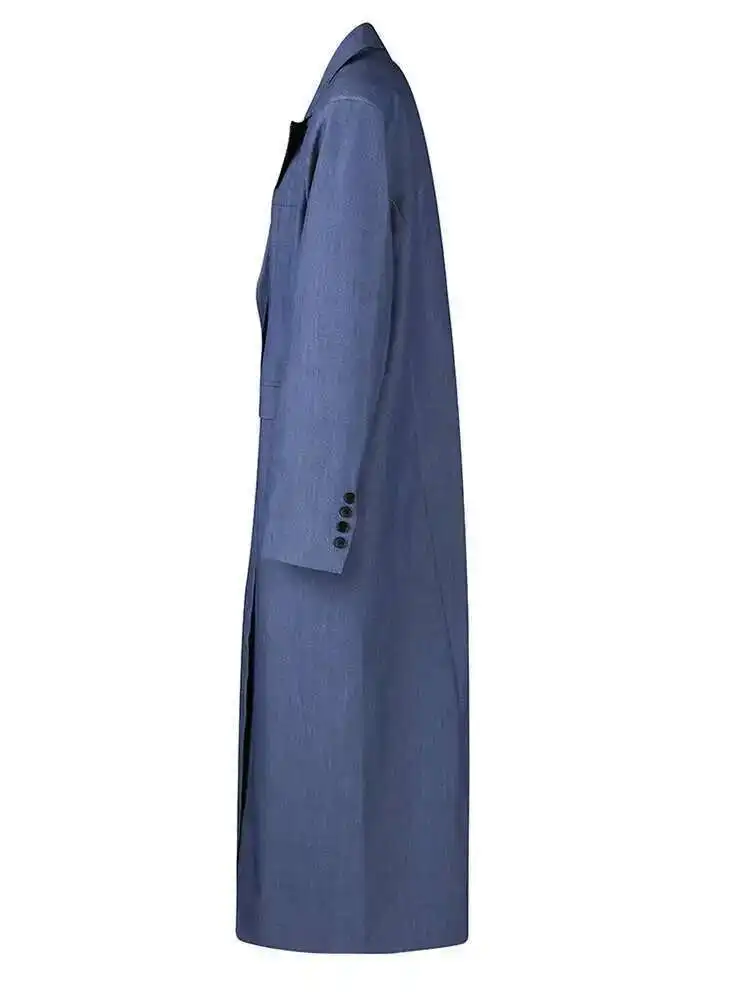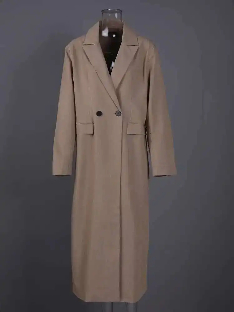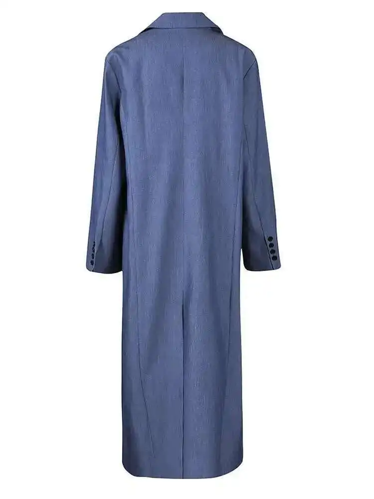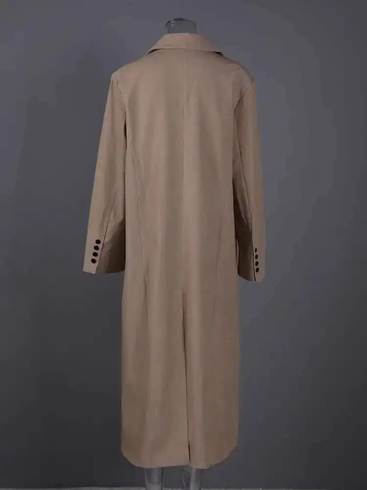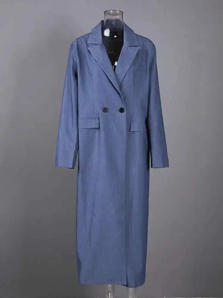 Women Blue Khaki Brief Long Big Size Elegant Blazer New Lapel Long Sleeve Jacket Fashion Tide Spring Autumn 2025 1LD2085