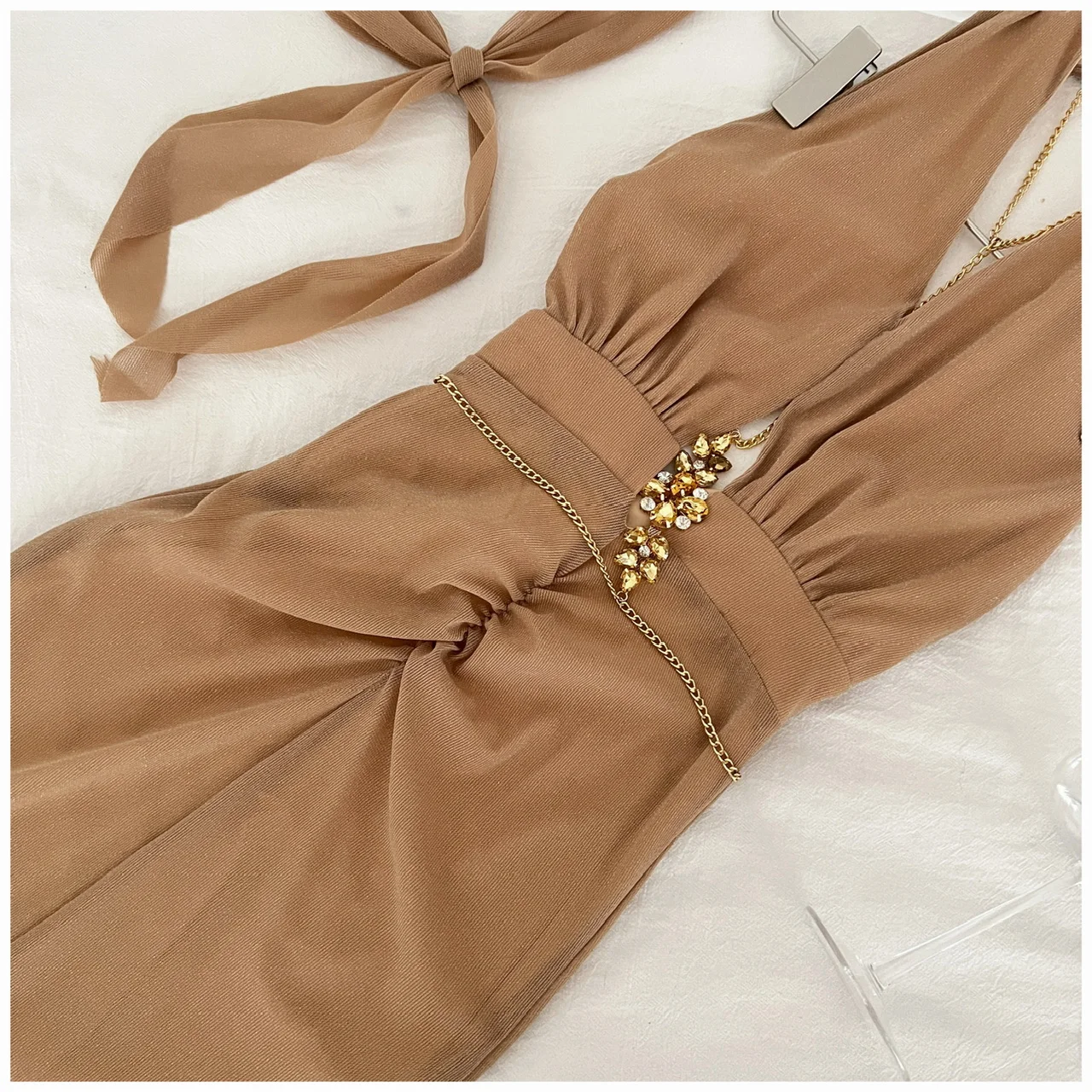 Women Brown High Waist Off Shoulder Hollow Out Backless Halter Long Dress Summer Sexy Elegant Sleeveless Party Evening Dress New