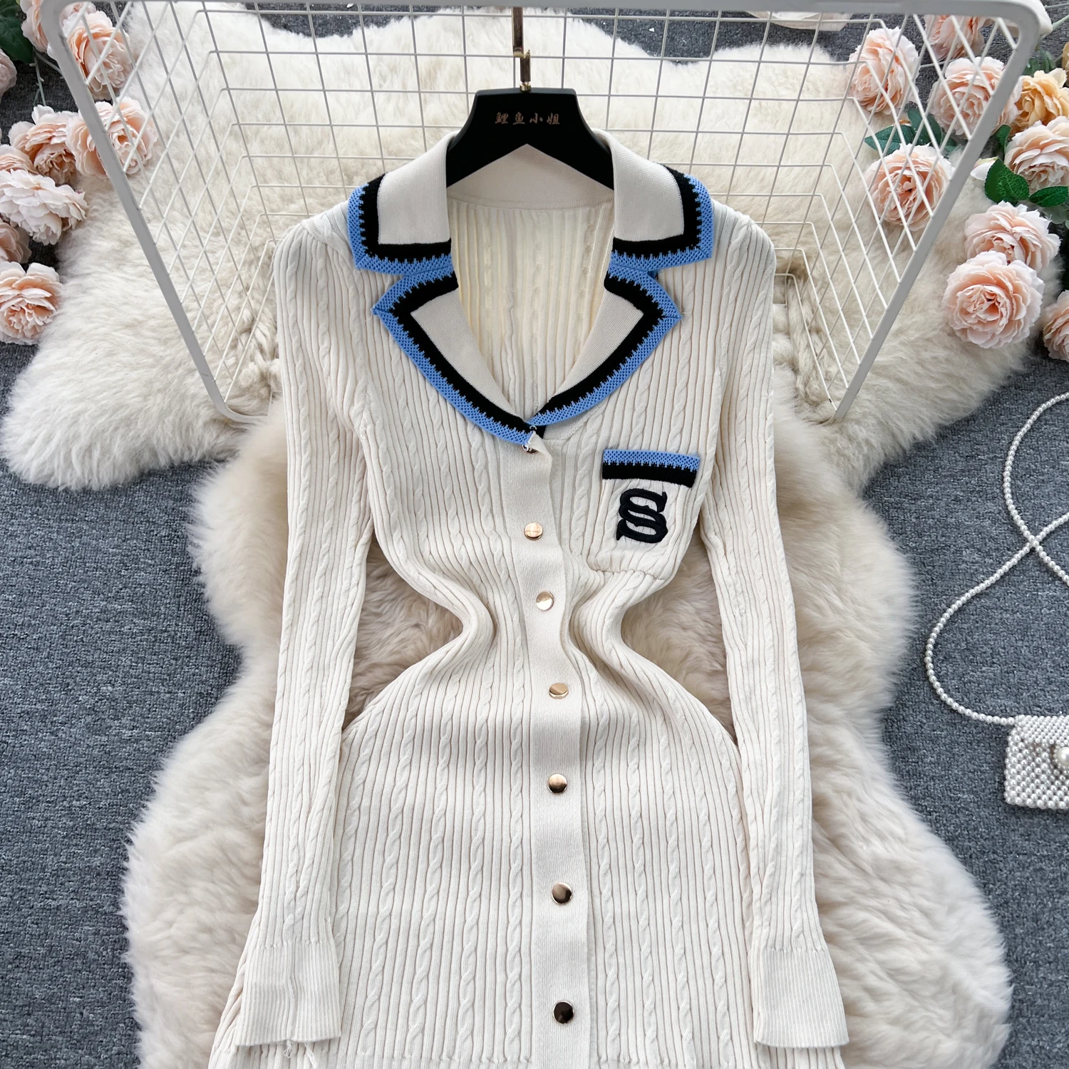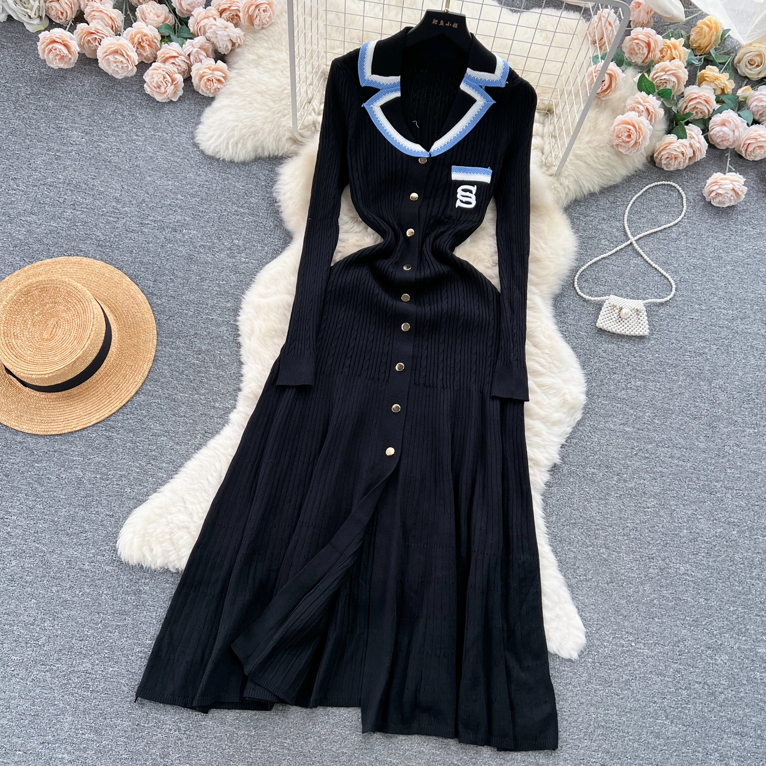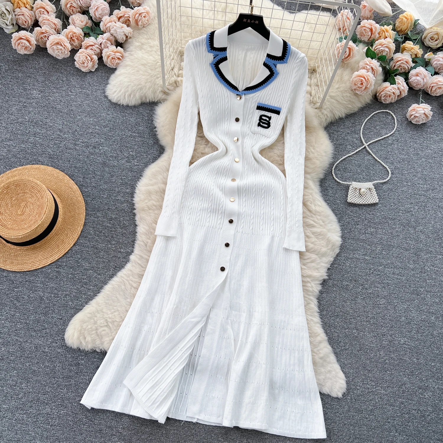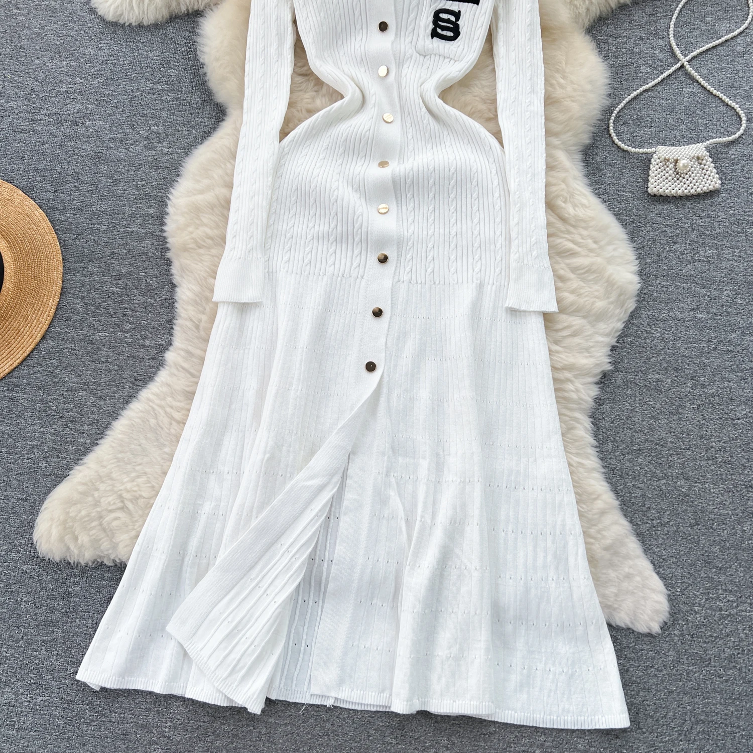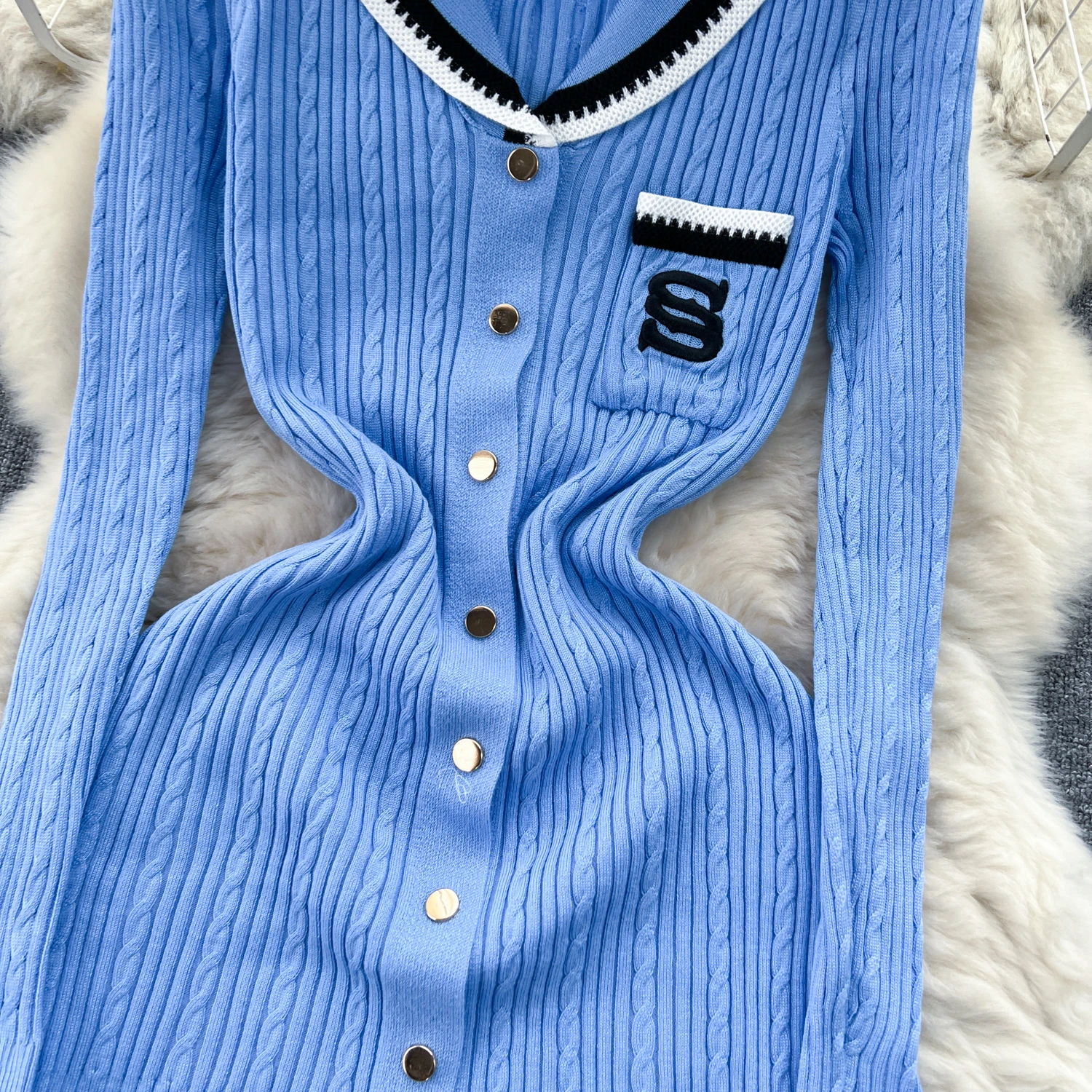 Women Elegant Patchwork Embroidery Knit Sweater Long Dress Autumn Winter Casual Fashion Slim Long Sleeve Button Dresses New 2023
