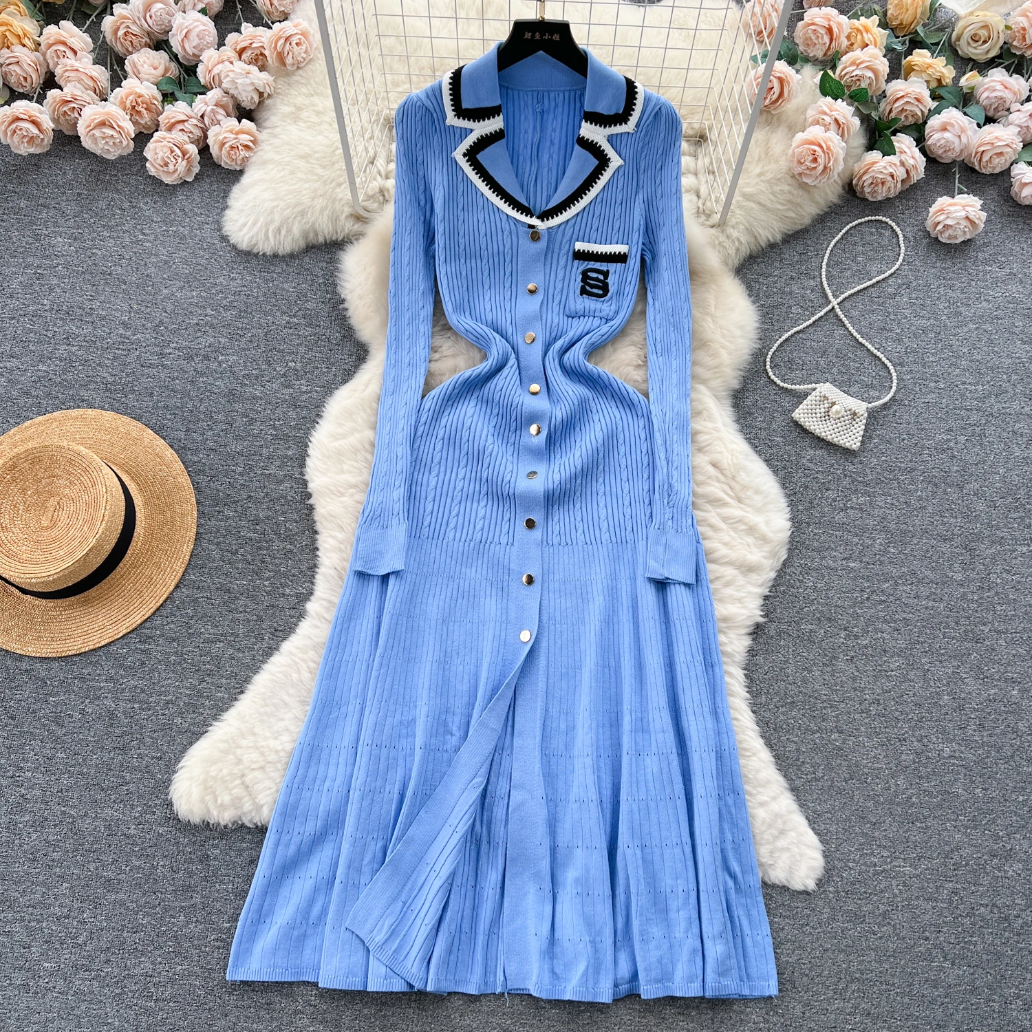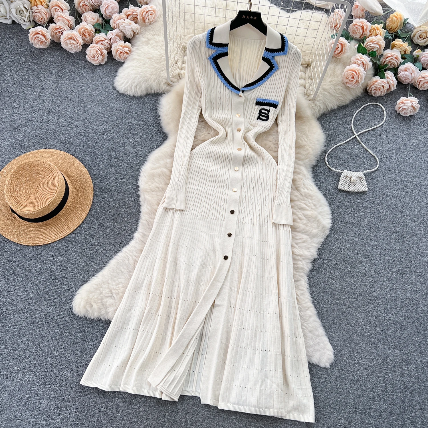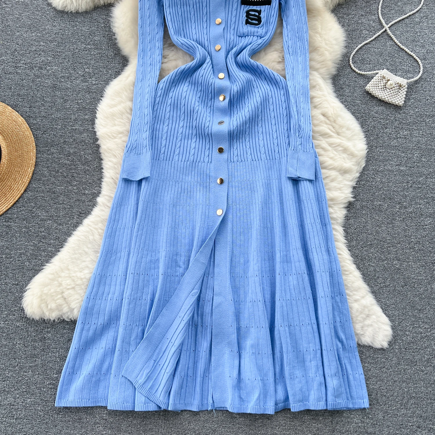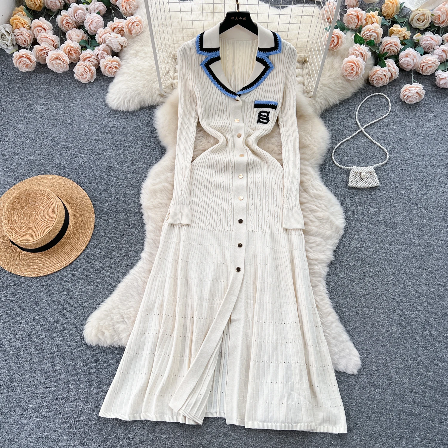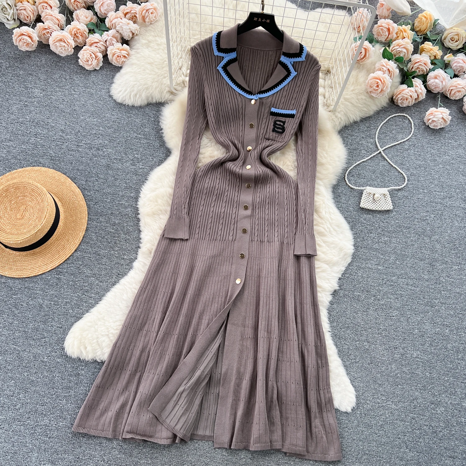 Women Elegant Patchwork Embroidery Knit Sweater Long Dress Autumn Winter Casual Fashion Slim Long Sleeve Button Dresses New 2023