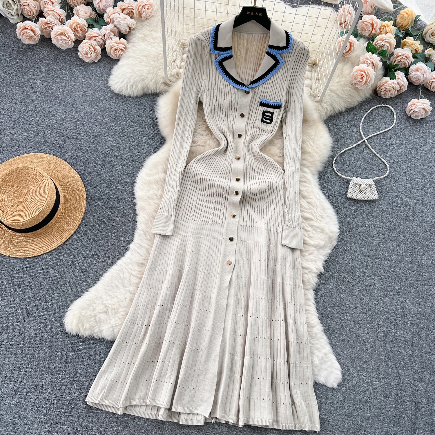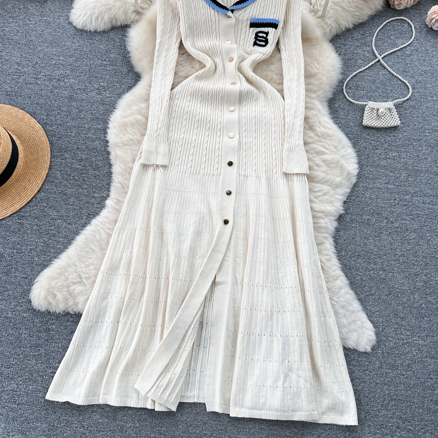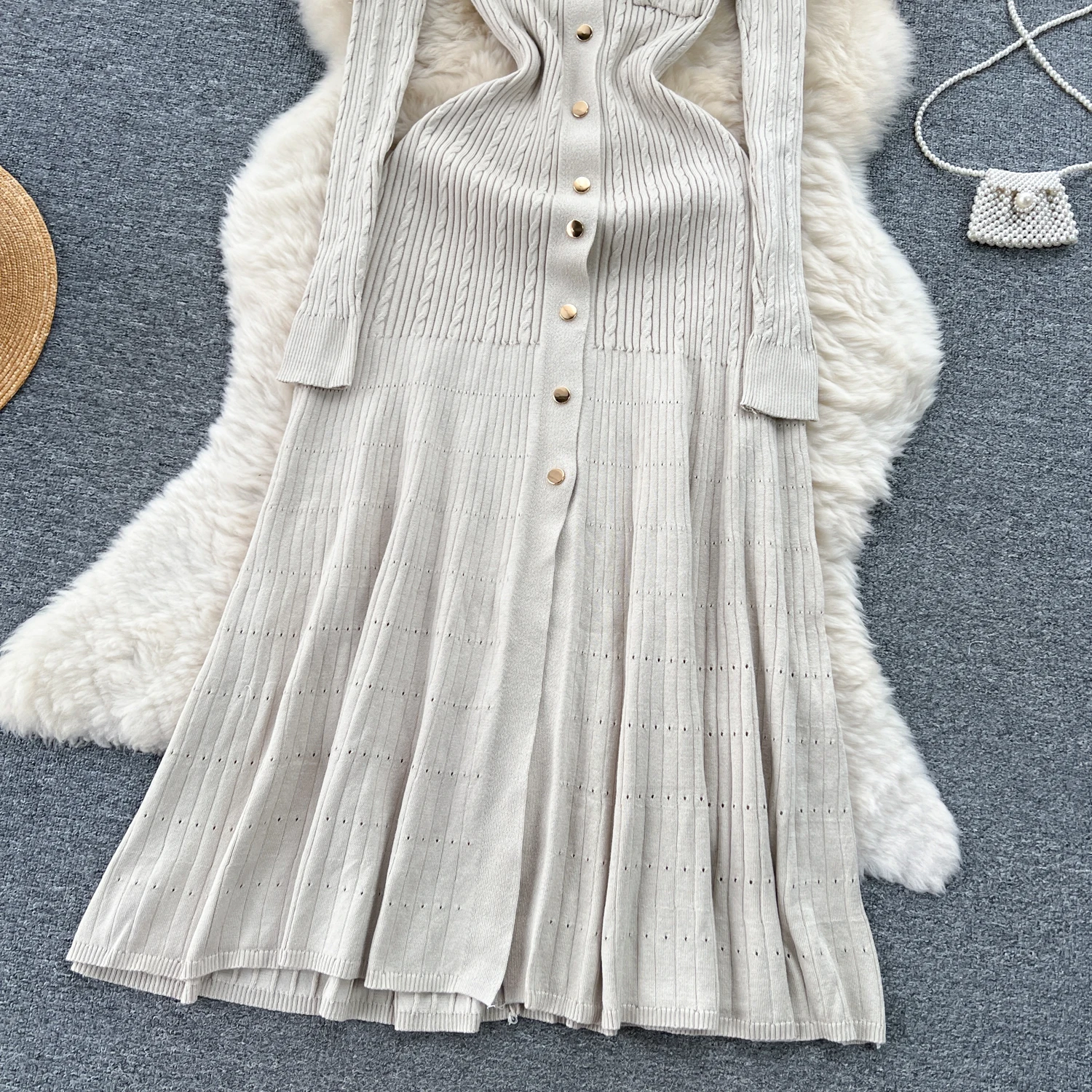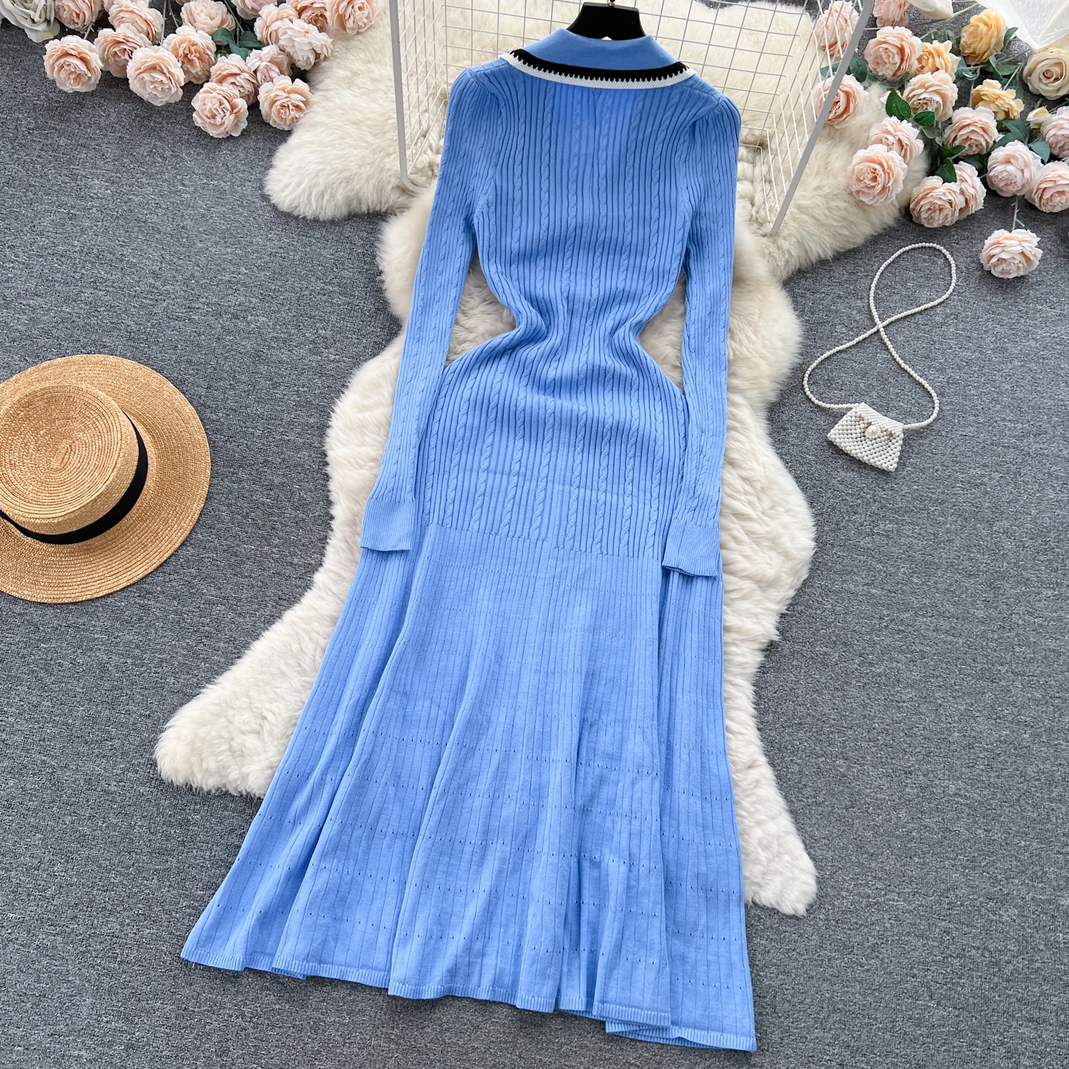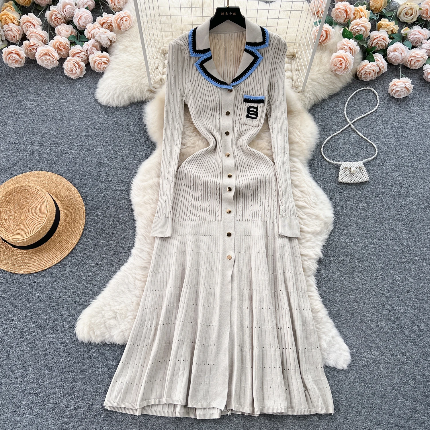 Women Elegant Patchwork Embroidery Knit Sweater Long Dress Autumn Winter Casual Fashion Slim Long Sleeve Button Dresses New 2023