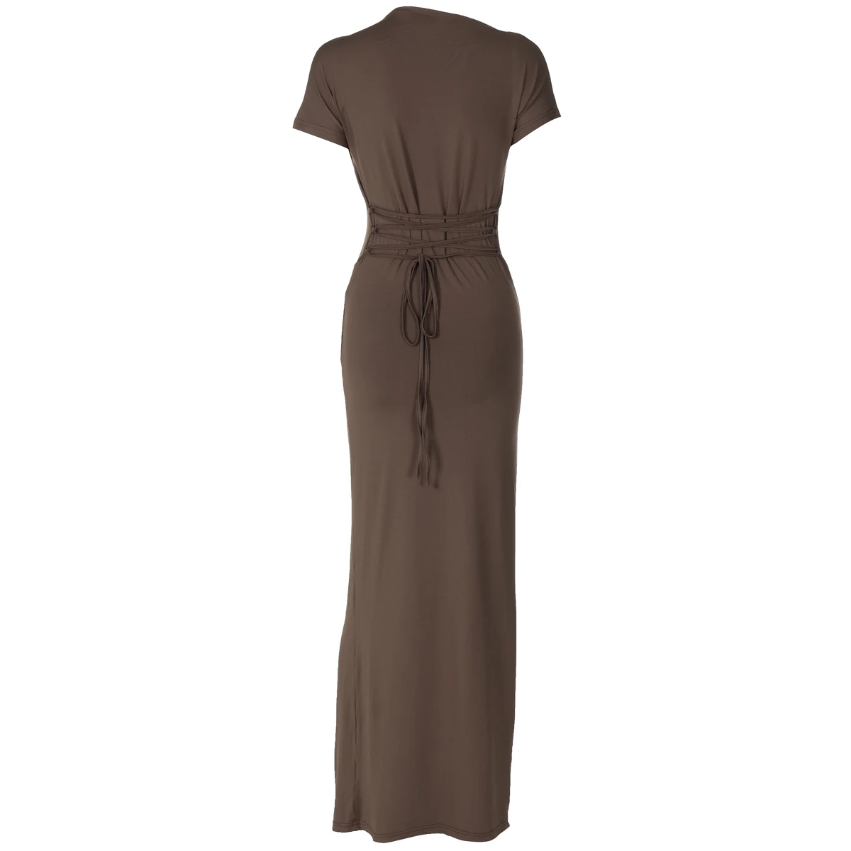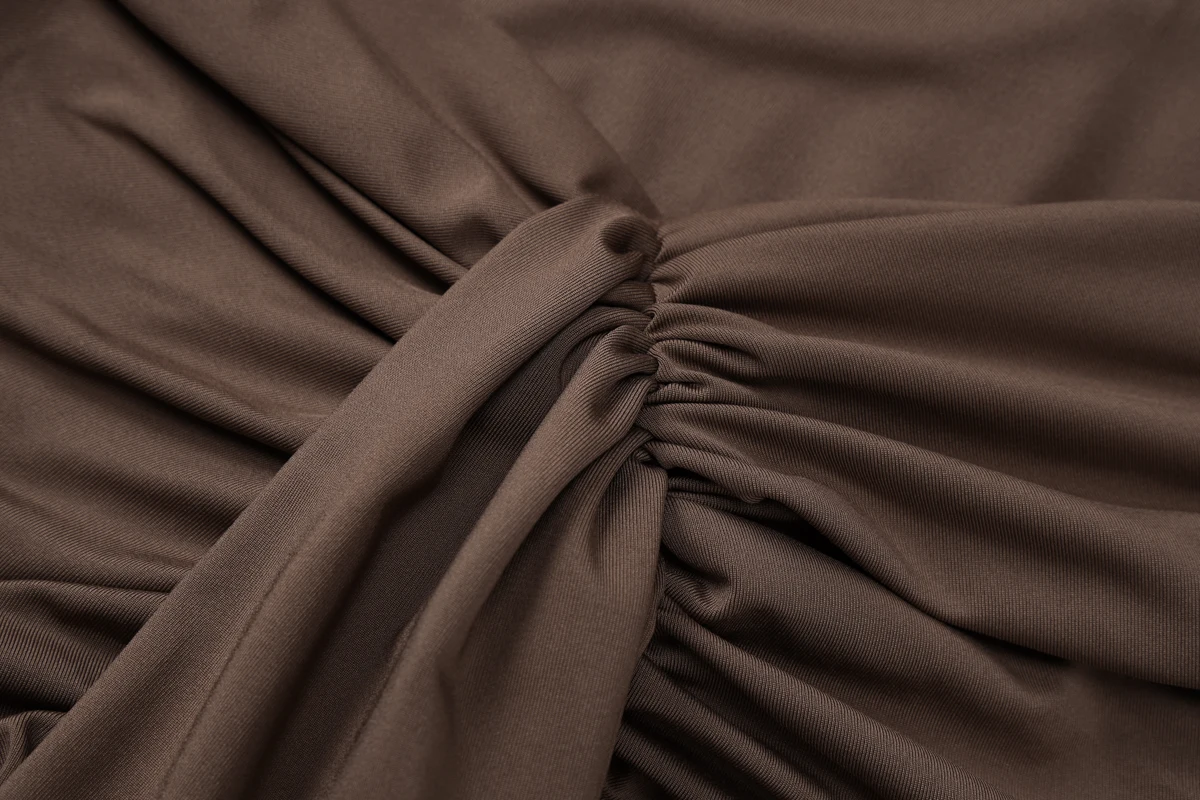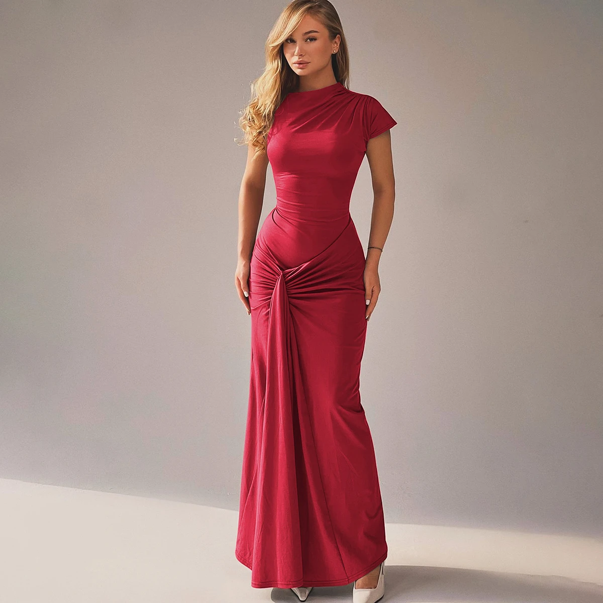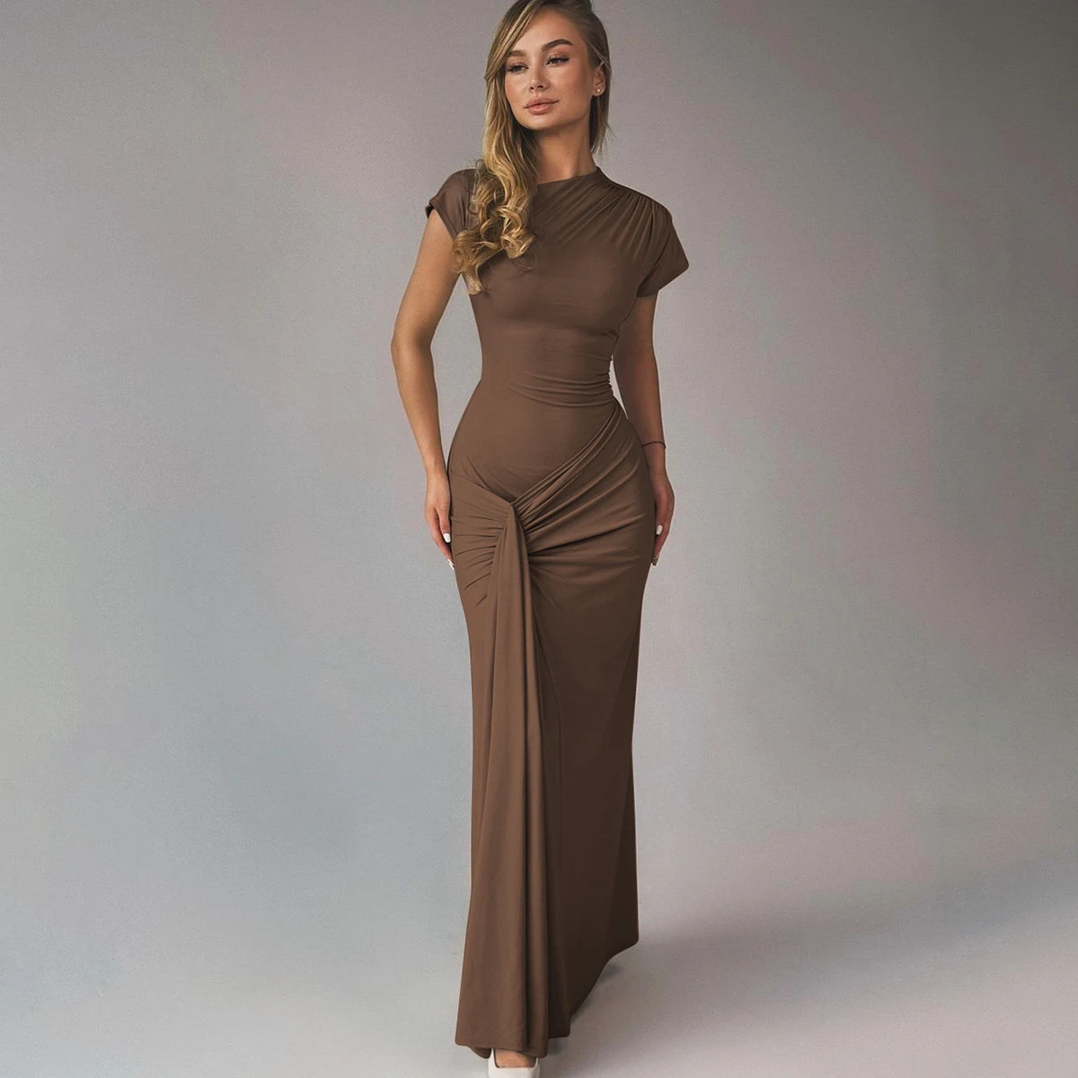 Women Fashion Solid Long Sleeve Ruched Bandage Sexy Bodycon Maxi Prom Dress Summer Y2K Outfits Evening Party Festival