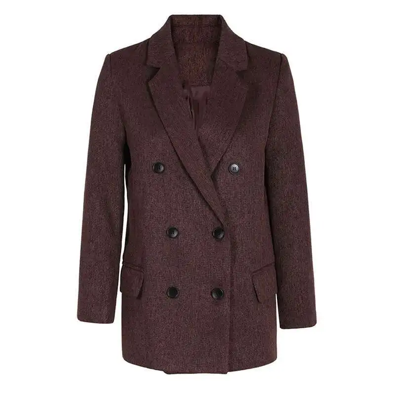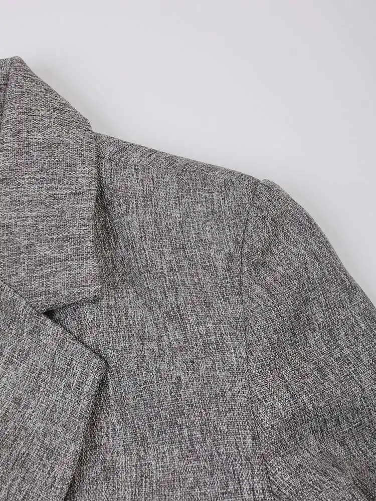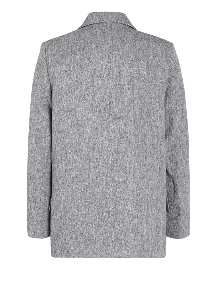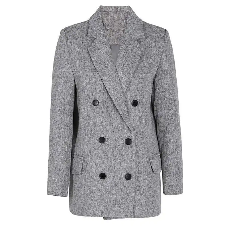 Women Gray Brief Double Breasted Elegant Blazer New Lapel Long Sleeve Jacket Fashion Tide Spring Autumn 2025 CPG1170