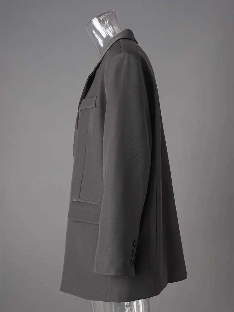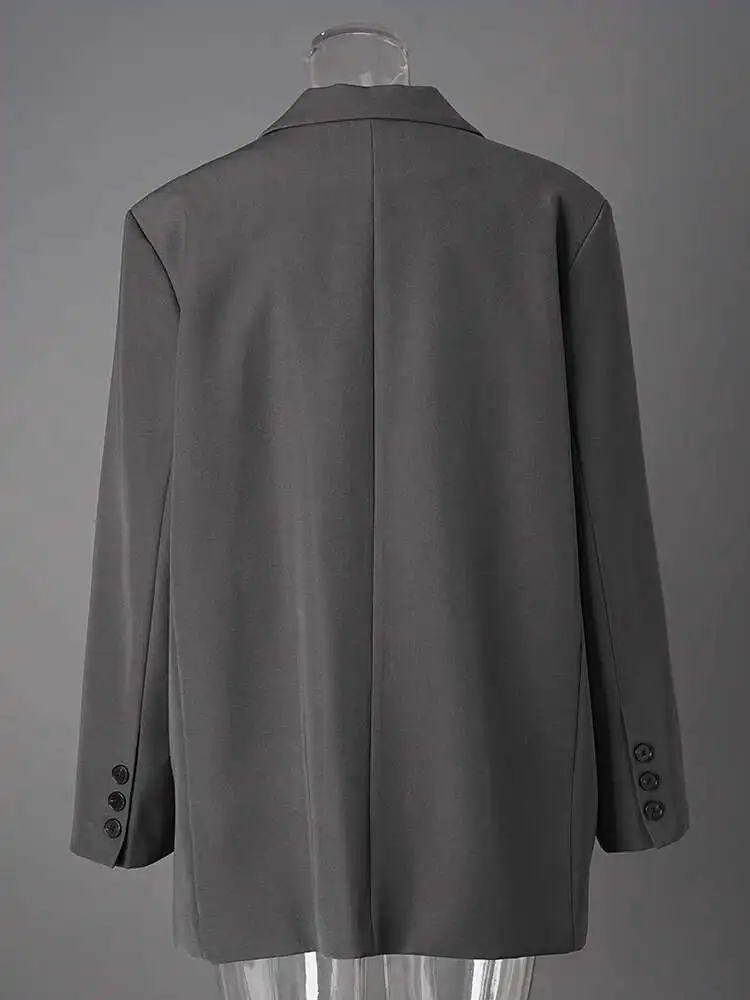 Women Gray Brief Single Breasted Big Size Blazer New Lapel Long Sleeve Jacket Fashion Tide Spring Autumn 2025 CPG2774