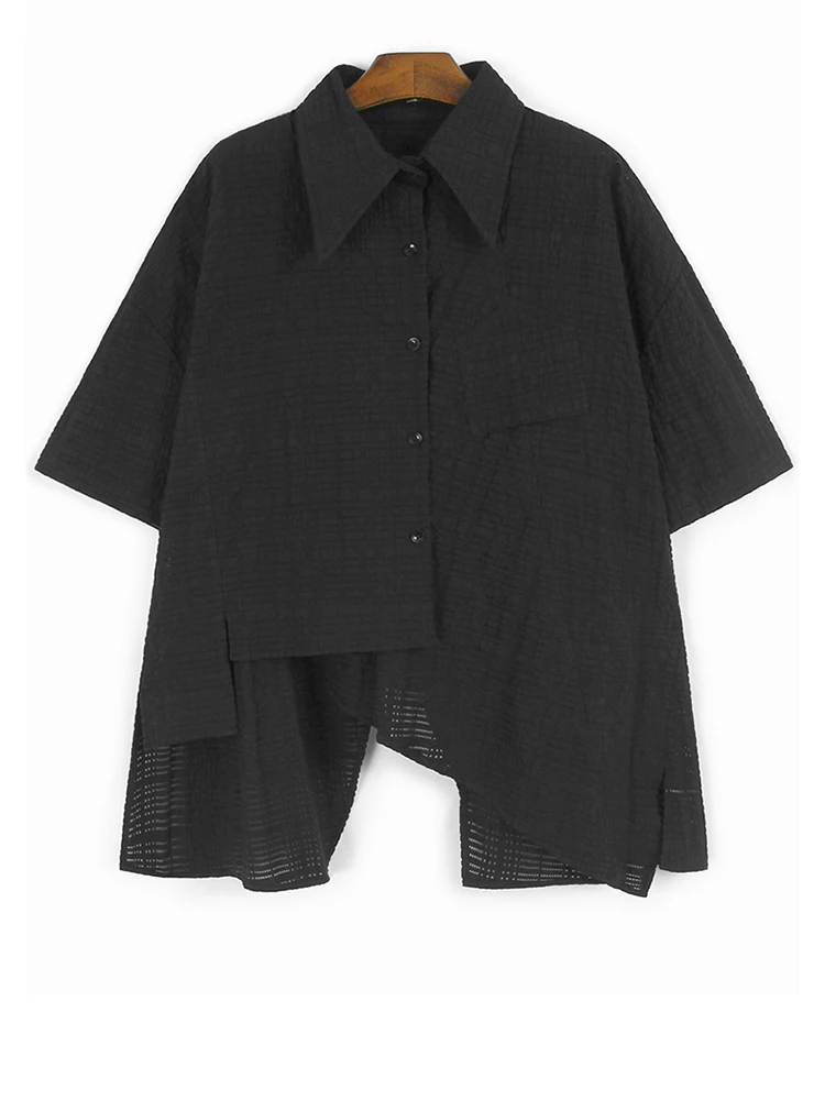 Women Green Irregular Hollow Out Big Size Blouse New Lapel Short Sleeve Shirt Fashion Tide Spring Summer 2025 1DJ1107