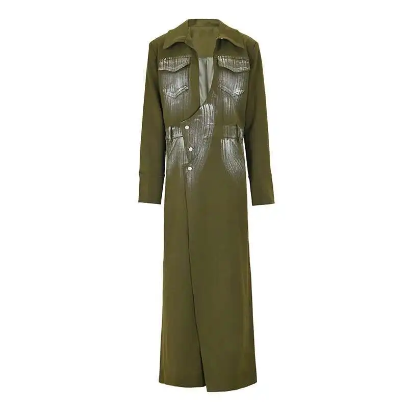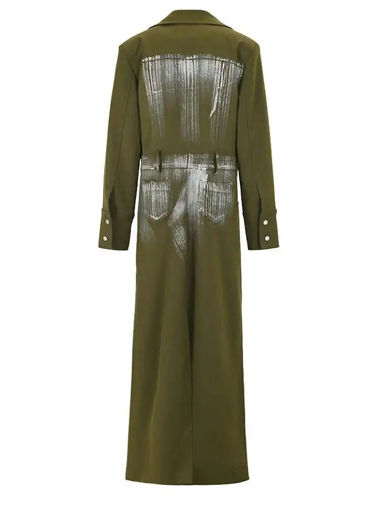 Women Green Paint Elegant Long Blazer New Lapel Long Sleeve Loose Fit Jacket Fashion Tide Spring Autumn 2025 1DF613806