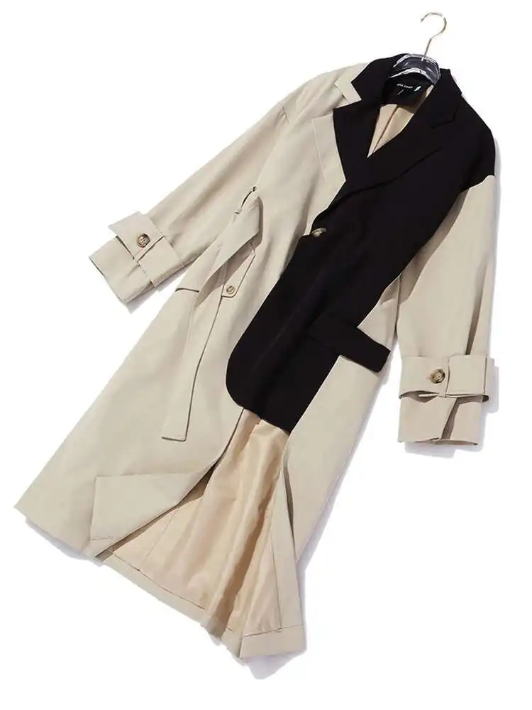 Women Khaki Big Size Asymmetrical Trench New Lapel Long Sleeve Loose Fit Windbreaker Fashion Spring Autumn 2025 1K912