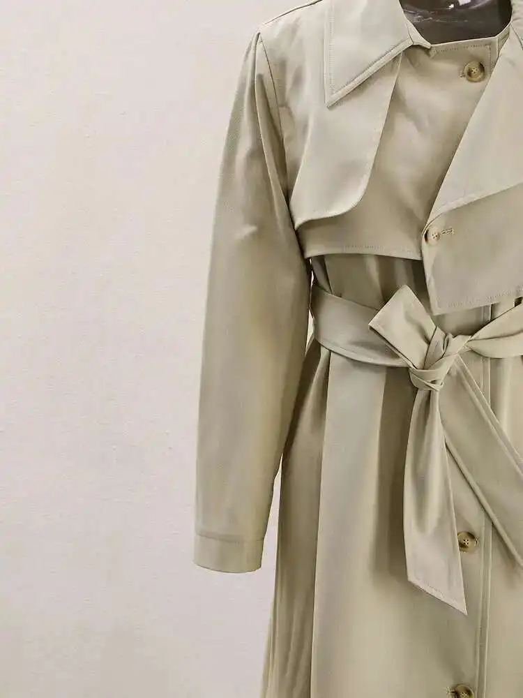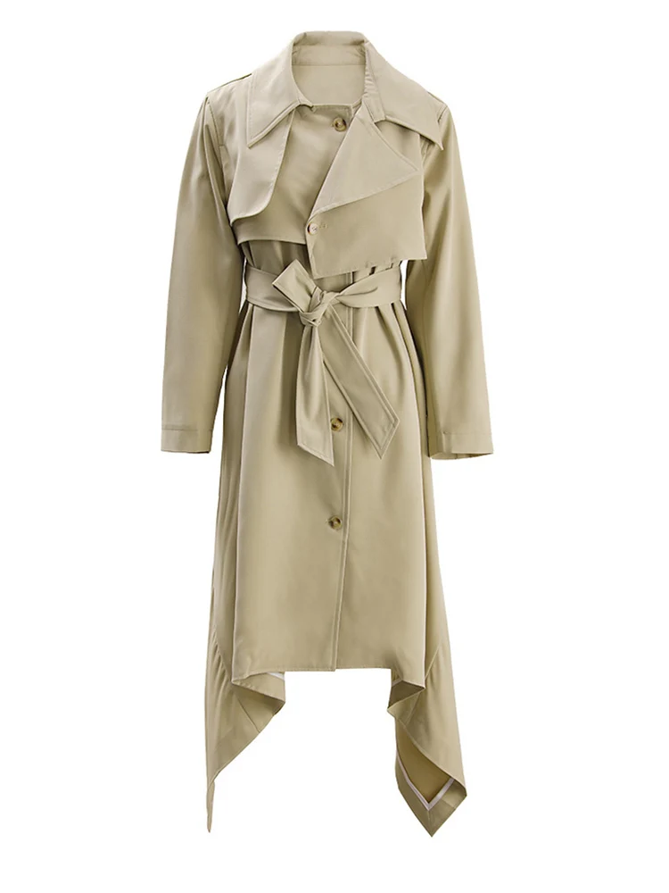 Women Khaki Irregular Hem Big Size Long Trench New Lapel Long Sleeve Windbreaker Fashion Tide Spring Autumn 2025 YX0378