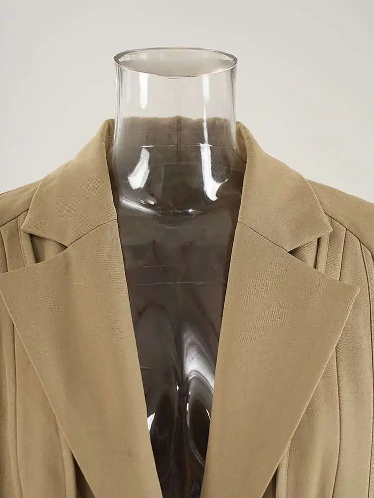 Women Khaki Irregular Spliced Shaped Elegant Blazer New Lapel Long Sleeve Jacket Fashion Tide Spring Autumn 2025 CPDB255