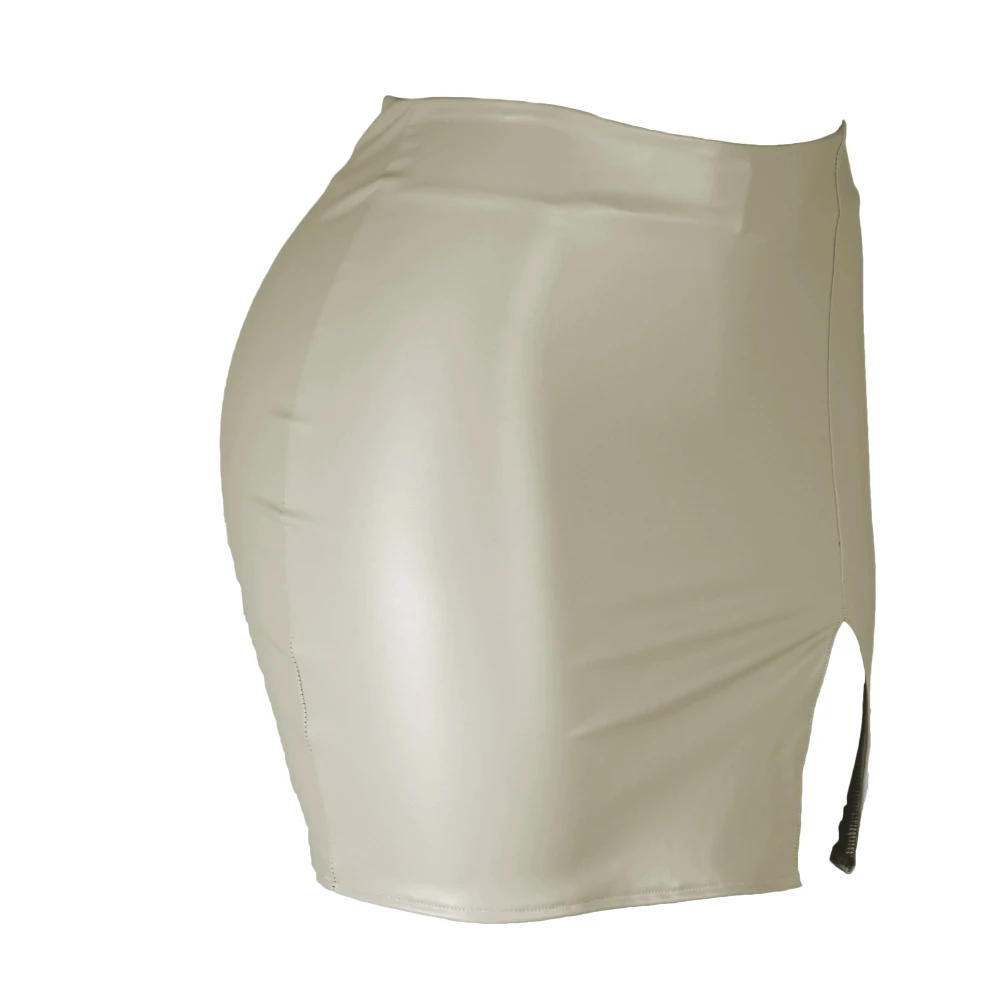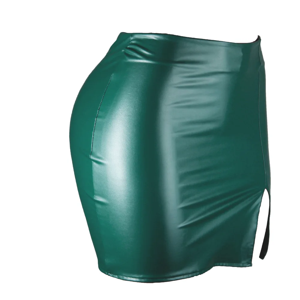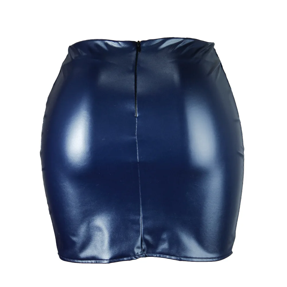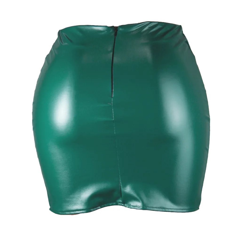 Women Leather Night Clubwear Skirts Summer Pure Color PU-leather Zipper Sexy Hip Leather Mini Skirts