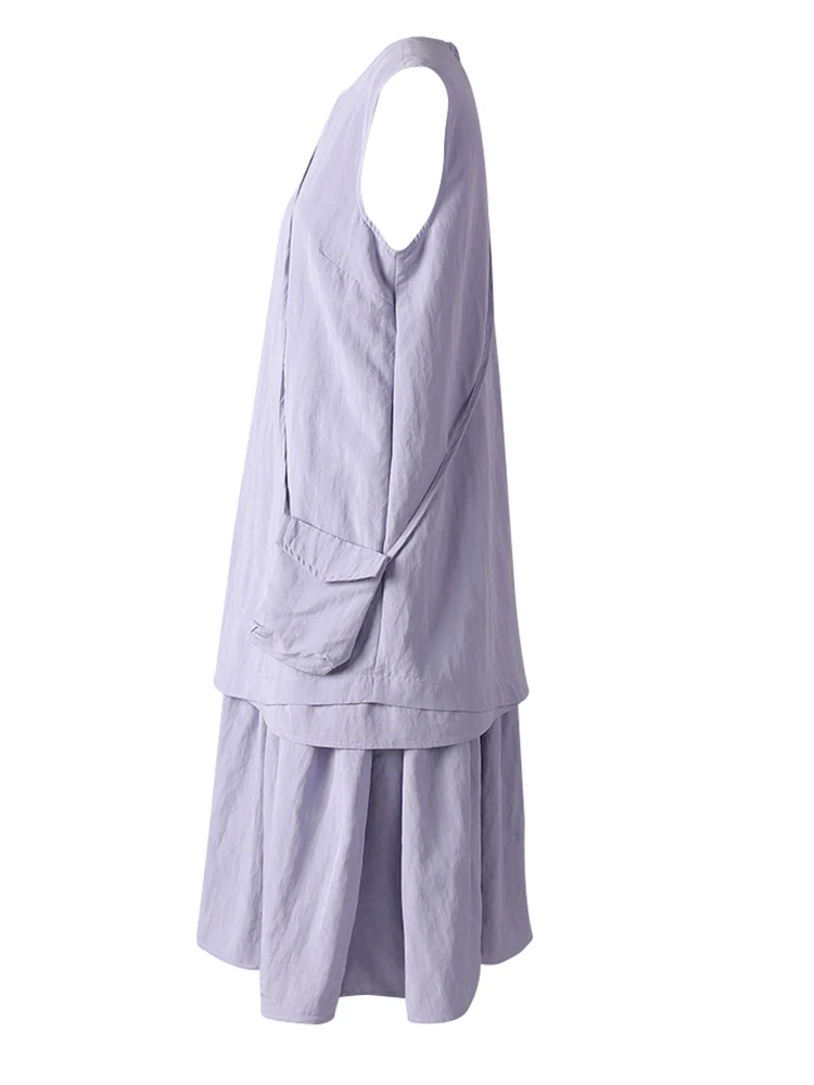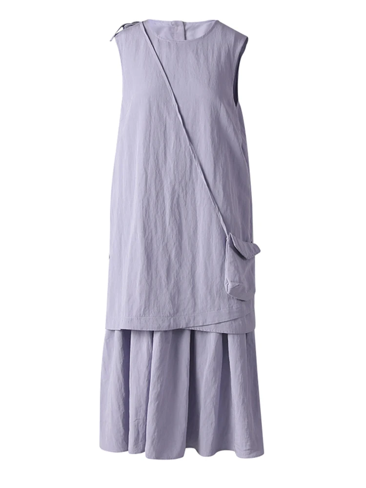Women Light Purple Irregular Spliced Big Size Vest Dress New Round Neck Sleeveless Fashion Tide Spring Summer 2025 CPG3083