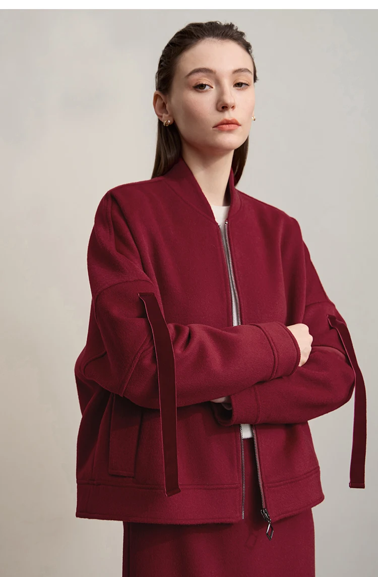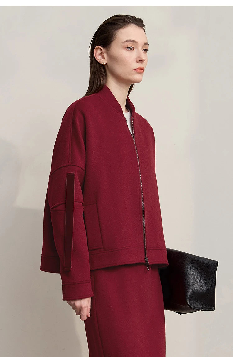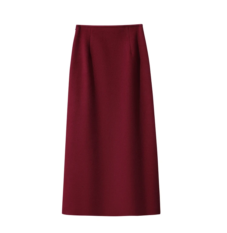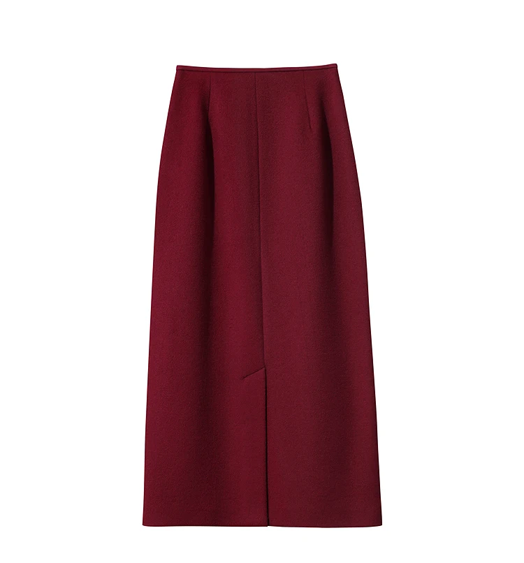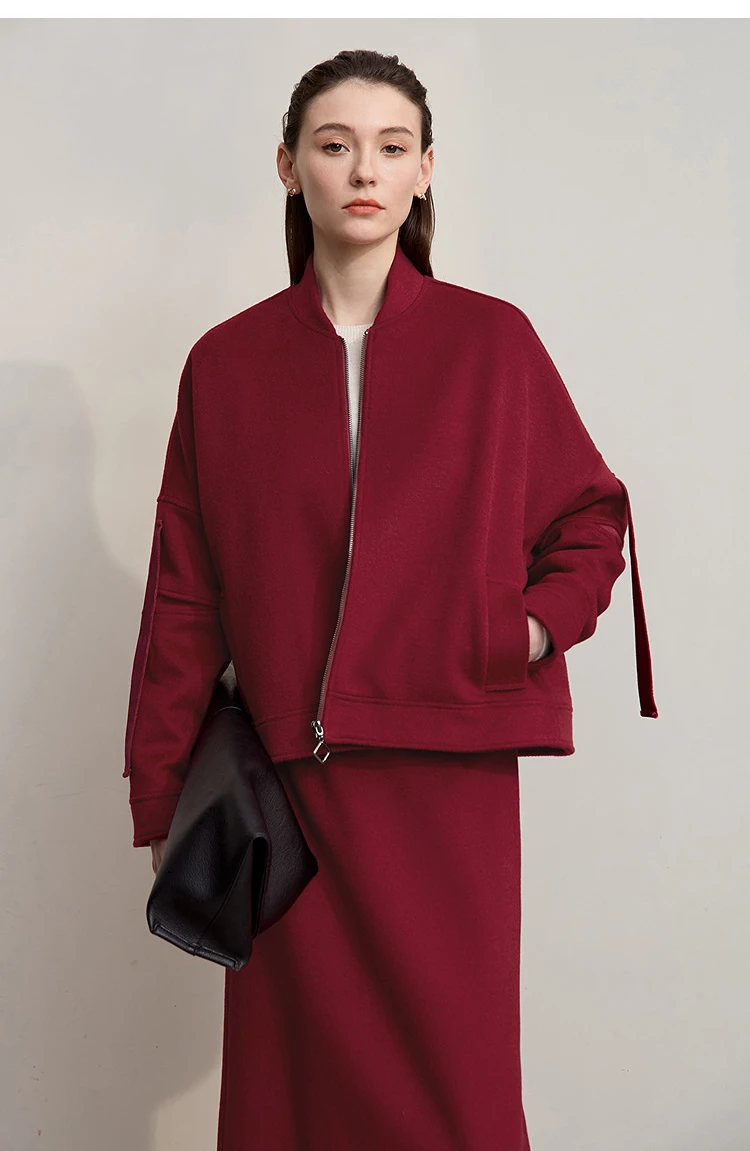 Women Midi Skirt 2025 Winter Minimalist Loose Zipper Versatile Long Sleeves Red Jacket A-Line Long Skirt Separate 12524022